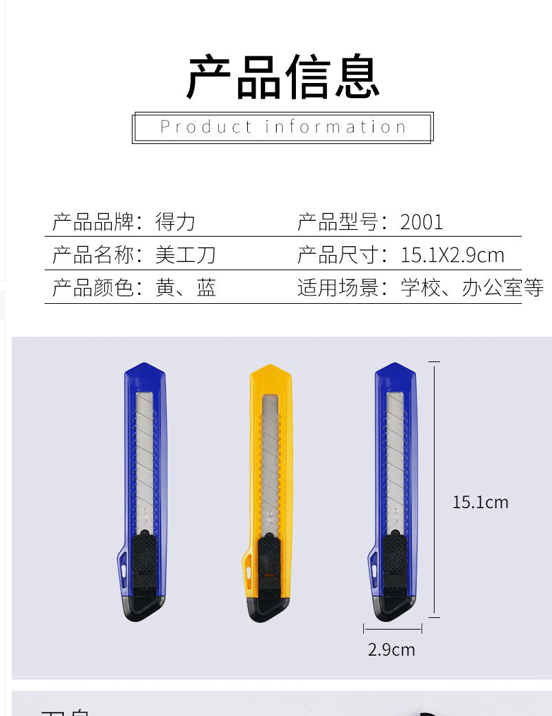 商品名称:得力(deli)美工刀大号 裁纸刀壁纸刀 2001 随机色