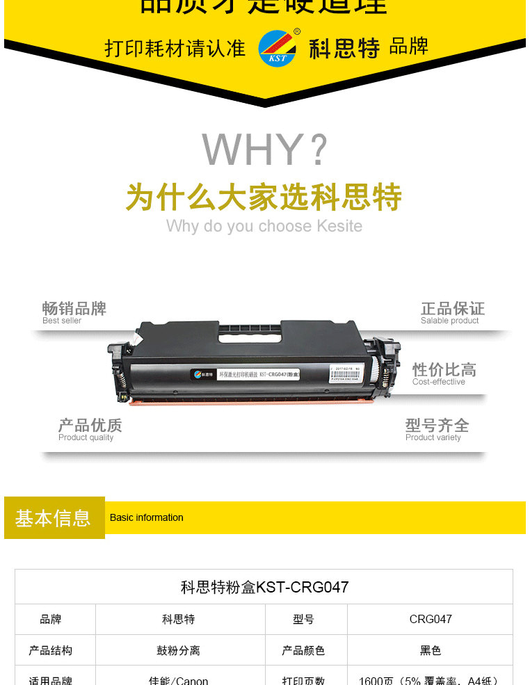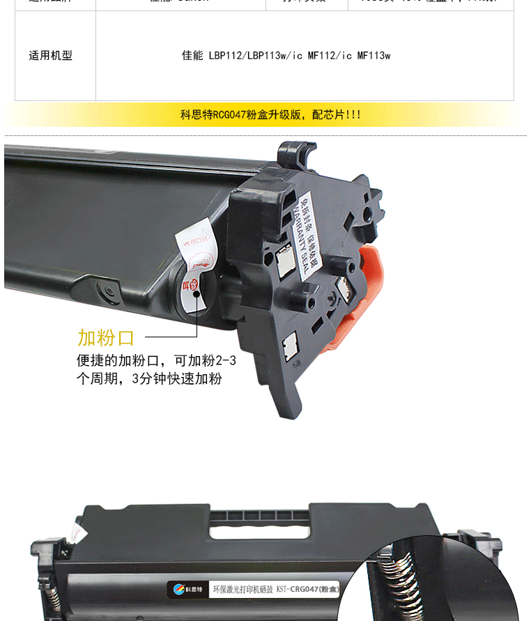 商品名称:科思特CRG047碳墨粉盒 适用佳能打印机 LBP112 113w/ic MF112/ic 113w CRG047粉盒 专业版(带芯片)