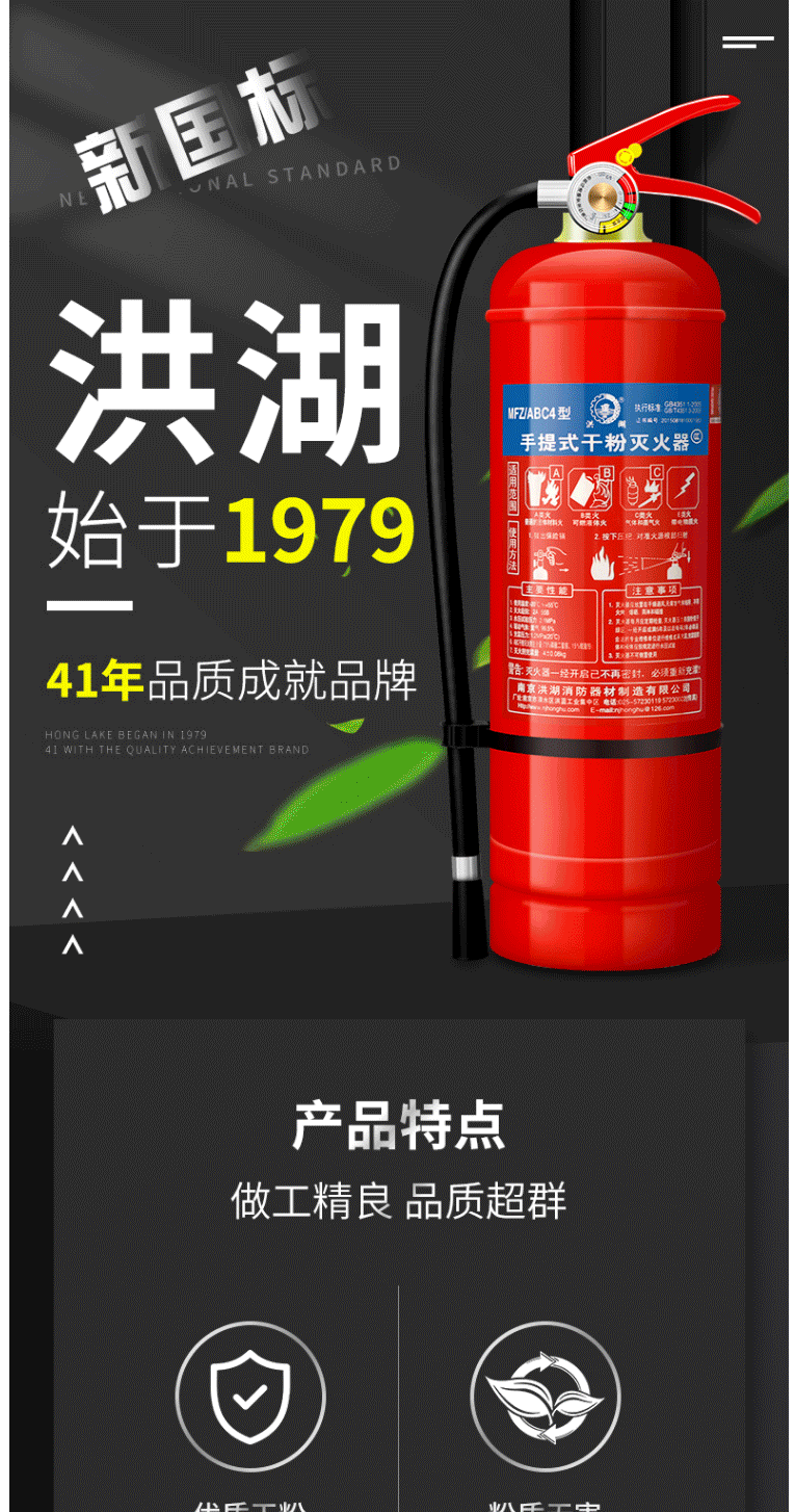 商品名称:洪湖 灭火器 干粉灭火器4公斤 手提式灭火器 MFZ/ABC4