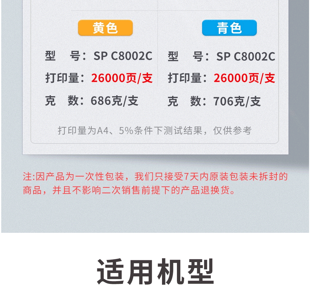 商品名称:理光(RICOH) MP C8002C型 墨粉 碳粉 C6502SP C8002SP 硒鼓 一套四色(4套)
