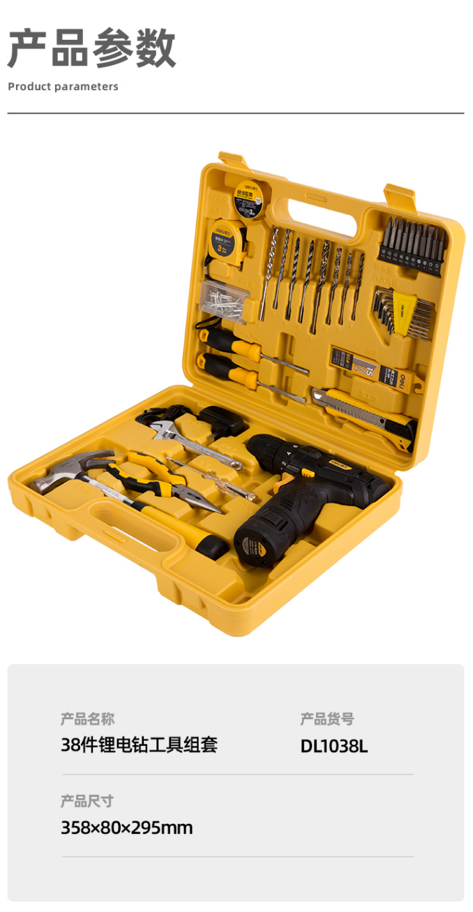 商品名称:得力(deli) 手电钻家用套装38件 DL1038L