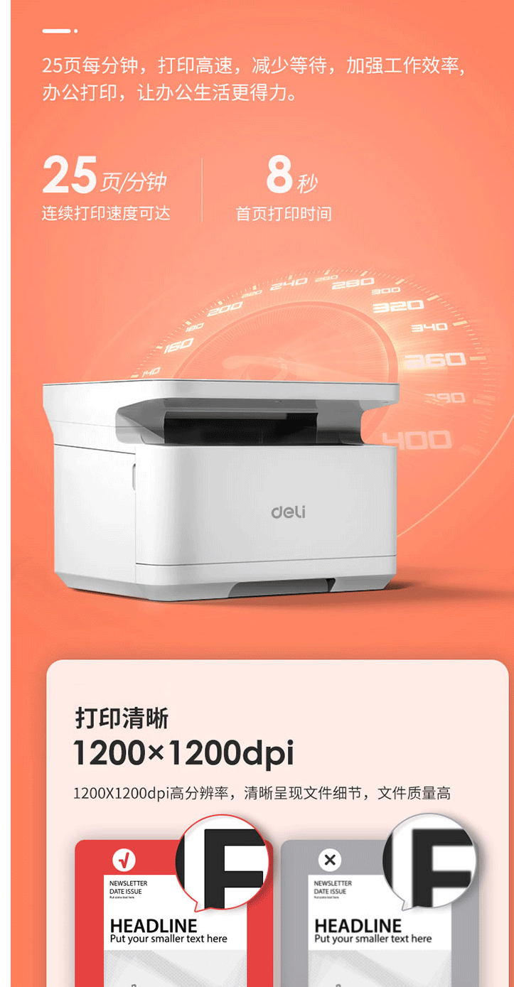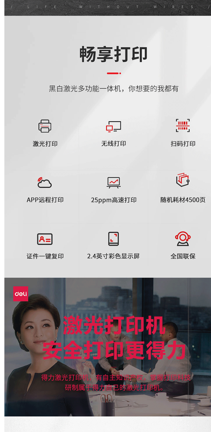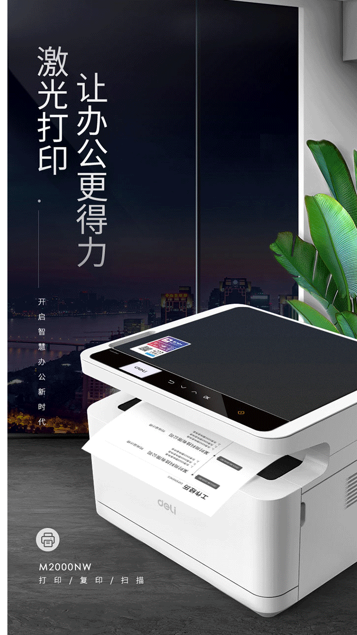商品名称:得力M2000NW激光打印复印扫描一体机无线/网络办公A4打印机一体机