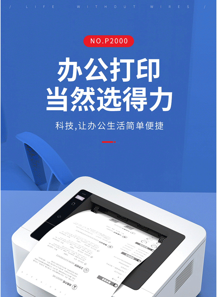 得力P2000激光打印机小型黑白激光打印机家用办公A4打印学生打印机