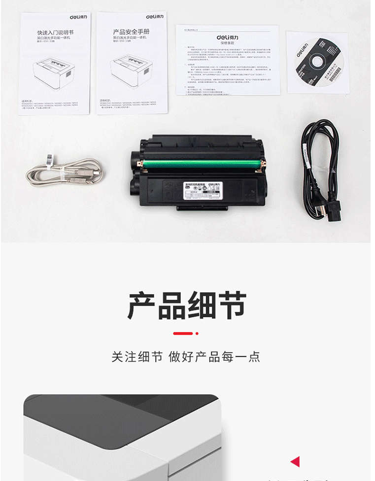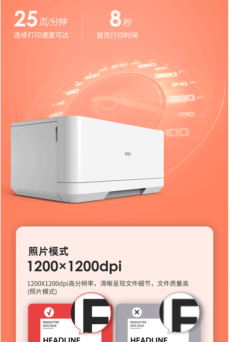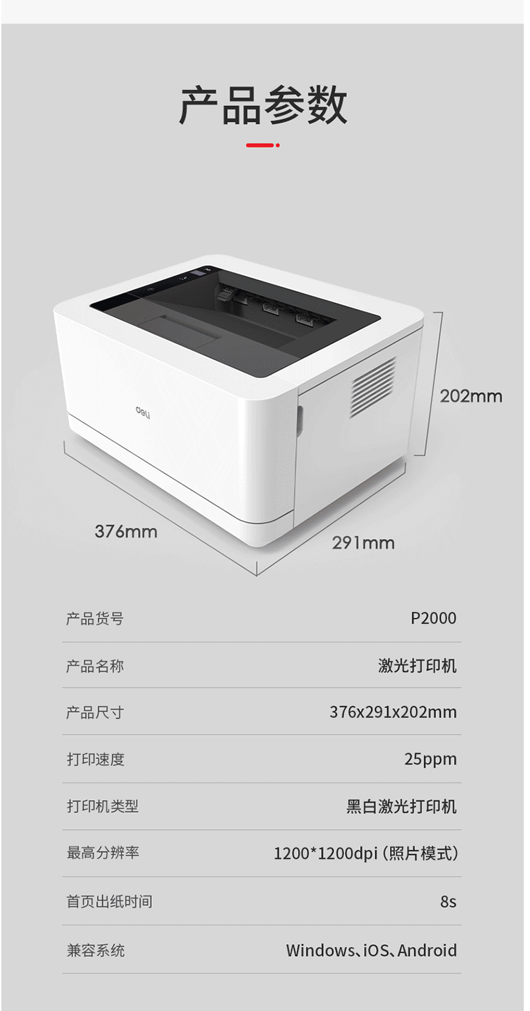 商品名称:得力P2000激光打印机小型黑白激光打印机家用办公A4打印学生打印机