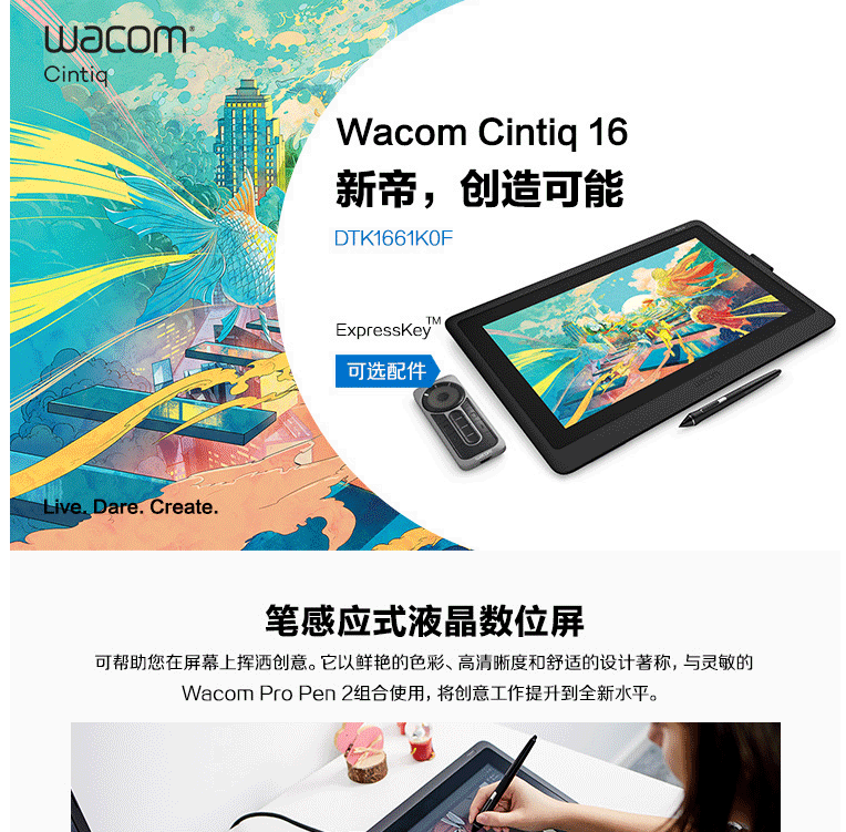 商品名称:Wacom和冠数位屏 手绘屏 绘画屏 绘图屏 数位板 手绘板 电脑绘图板 新帝DTK1661