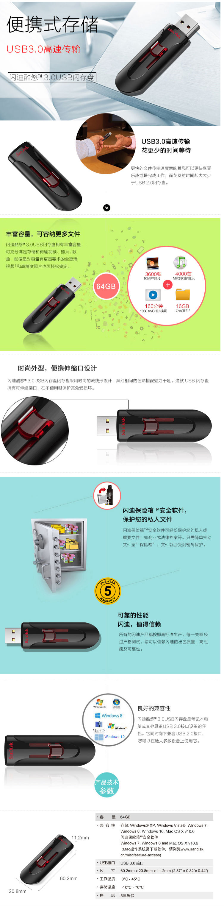 商品名称:闪迪 (SanDisk) U盘128GB USB3.0 U盘 CZ600酷悠 黑色