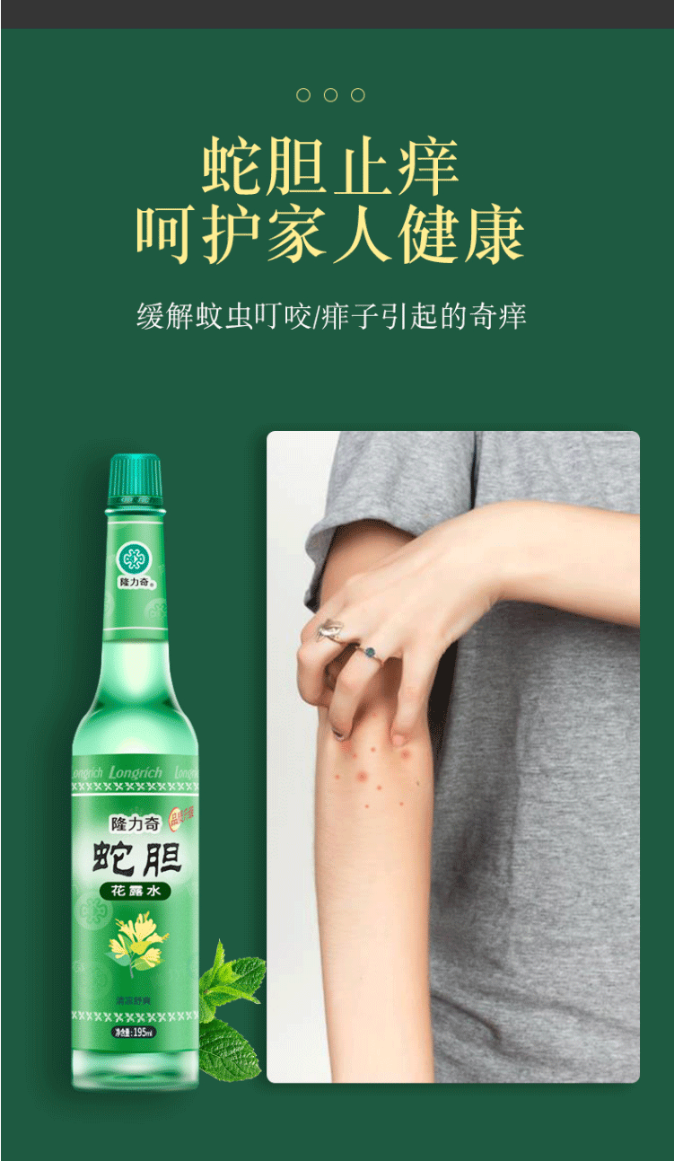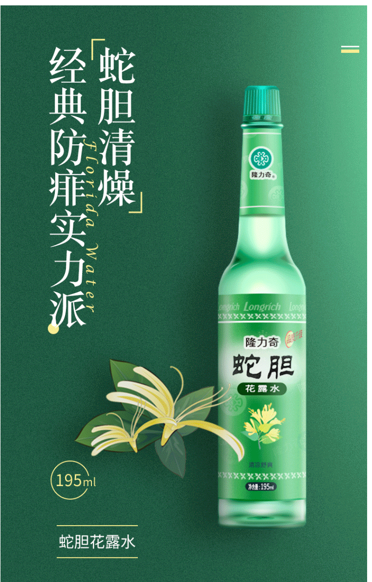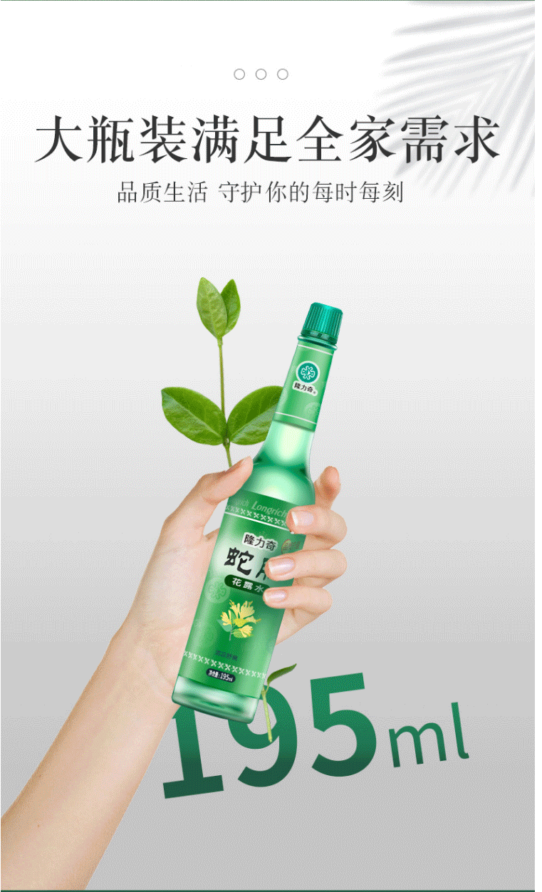 商品名称:隆力奇蛇胆花露水195ml 玻璃瓶装