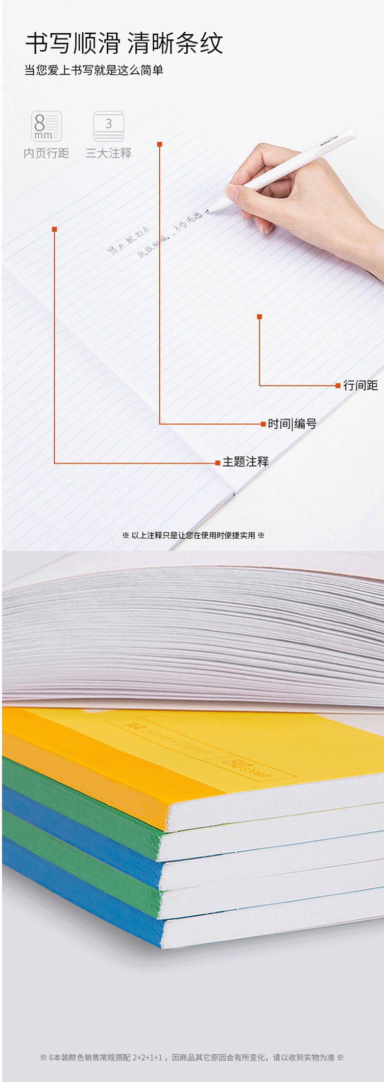 得力7659办公无线装订本(混) A4-80张 6本/包