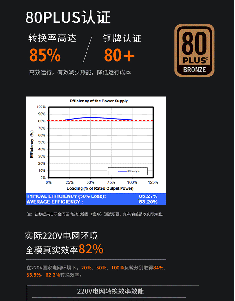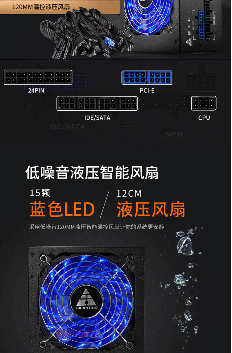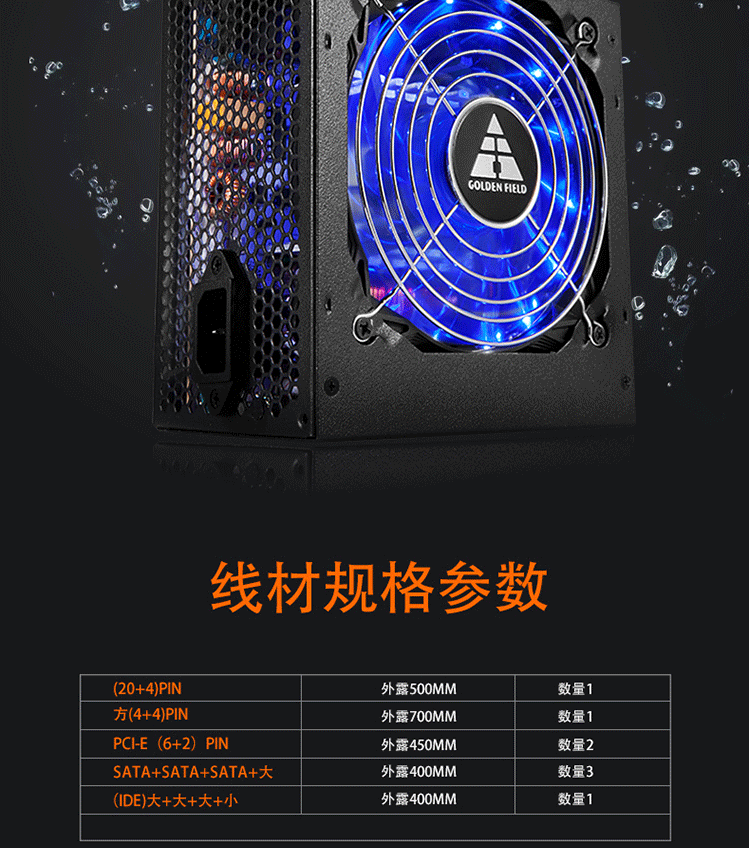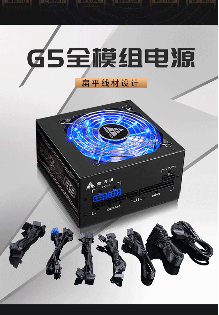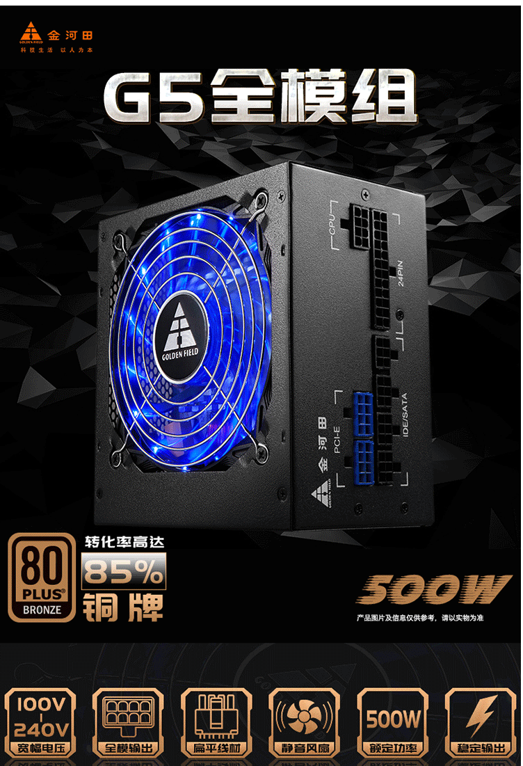 金河田(Golden field)额定500W G5全模组电脑电源(80PLUS铜牌/温控/宽幅电压/全模输出)