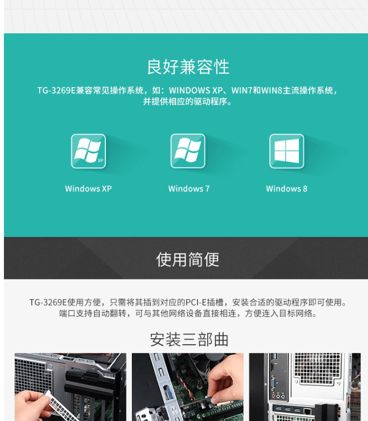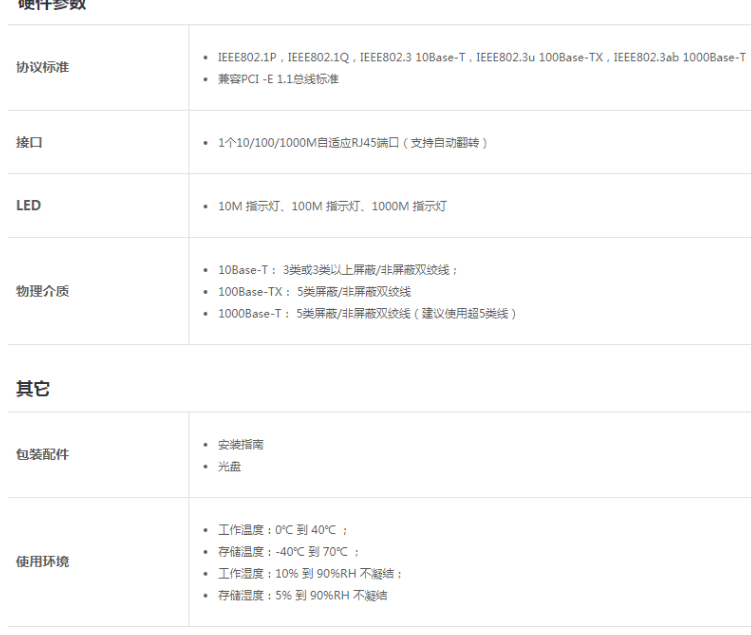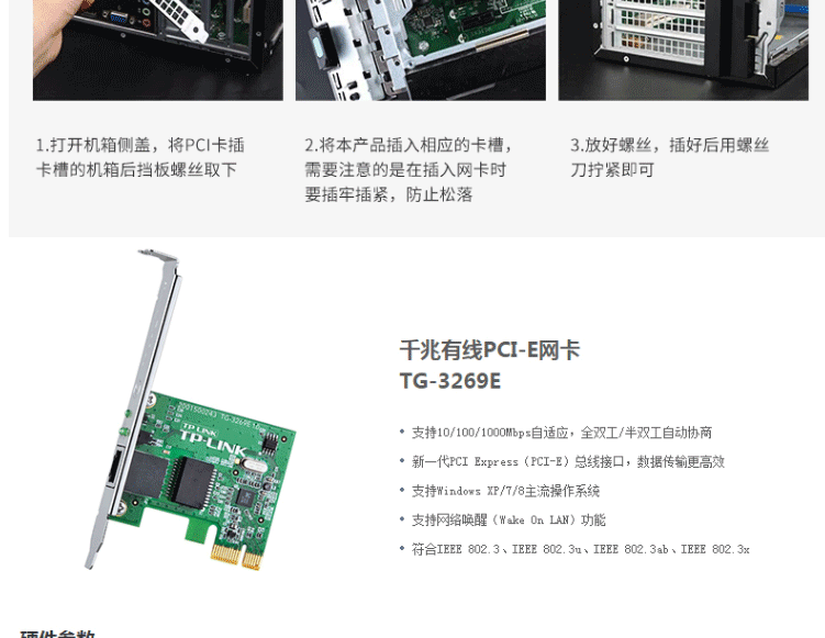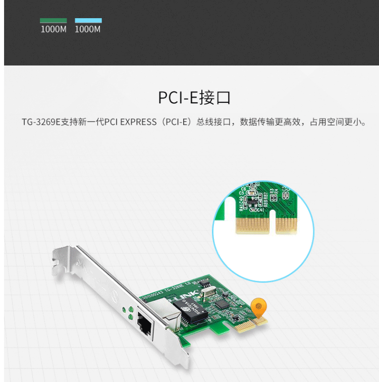 商品名称:普联(TP-LINK)TG-3269E 电脑主板内置有线网卡 双向数据传输全双工半双工自适应 千兆 PCI-E接口