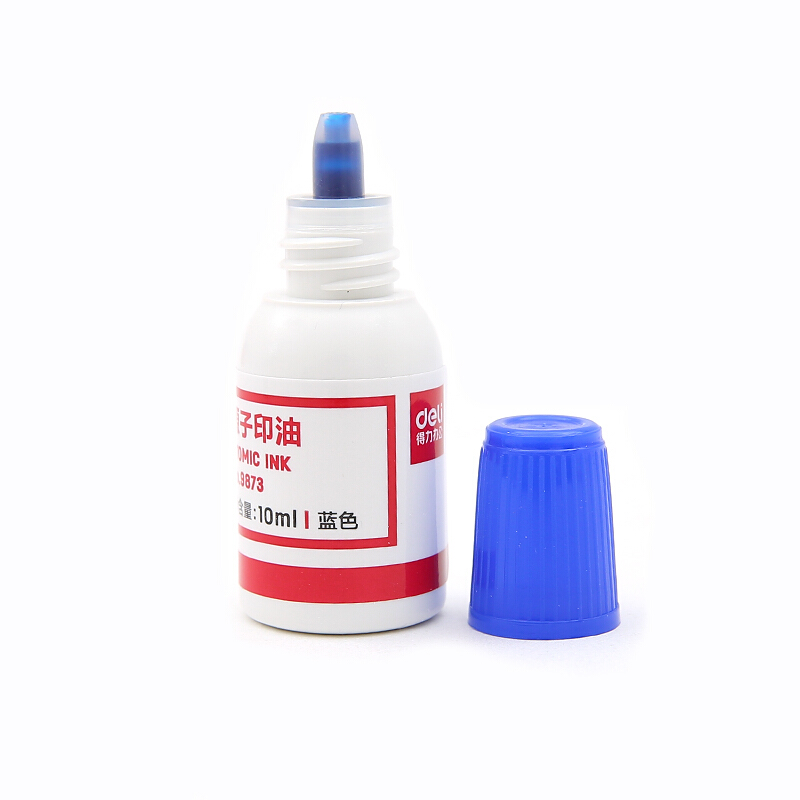 得力 (deli)9873 10ml原子印油 印台印泥油印章油专用快干 蓝色【8只装】