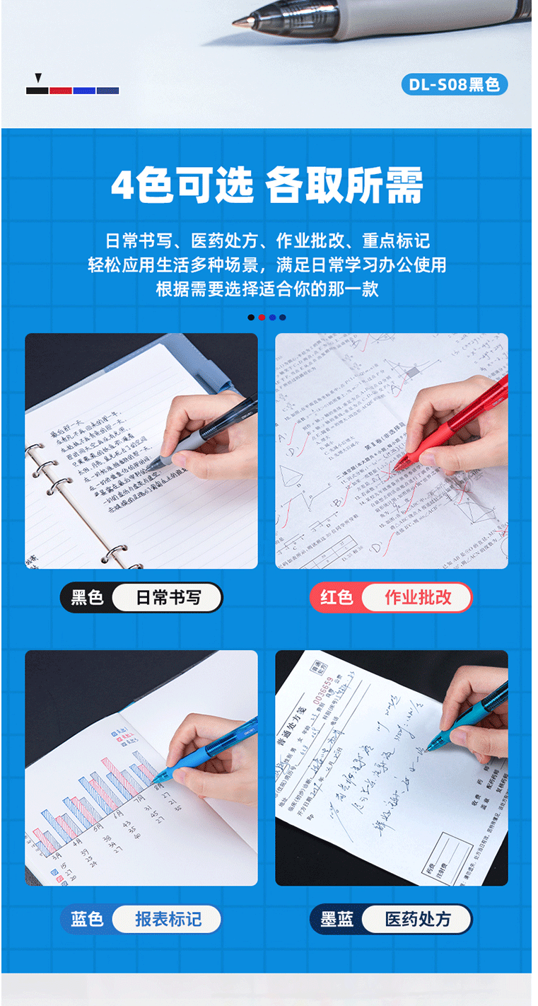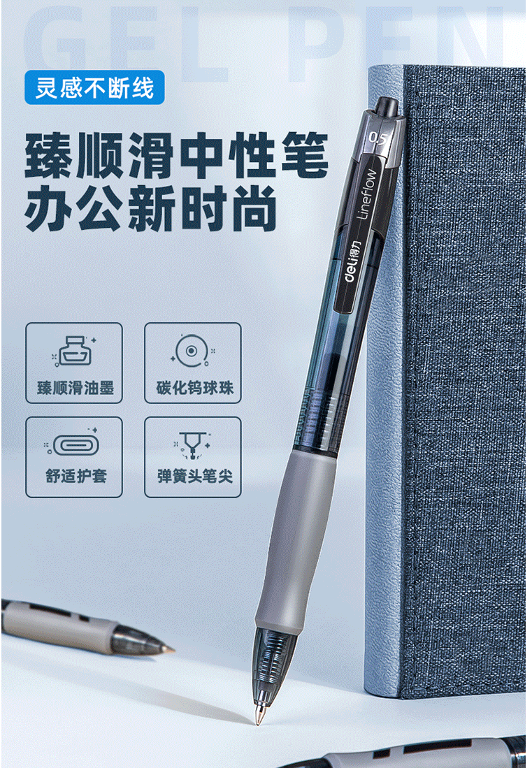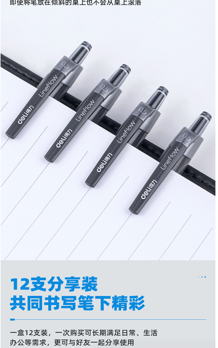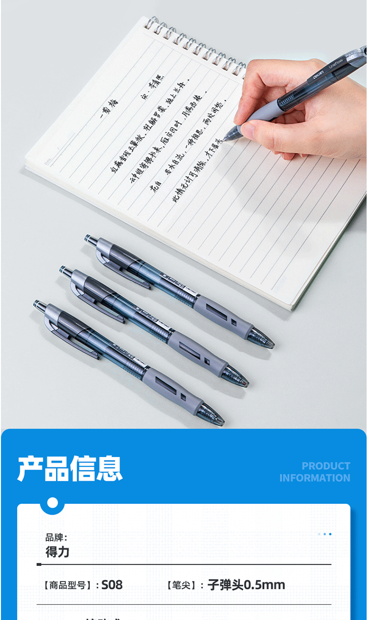 商品名称:得力(deli)臻顺滑中性笔签字笔 0.5mm子弹头按动笔水笔 S08黑色 12支/盒