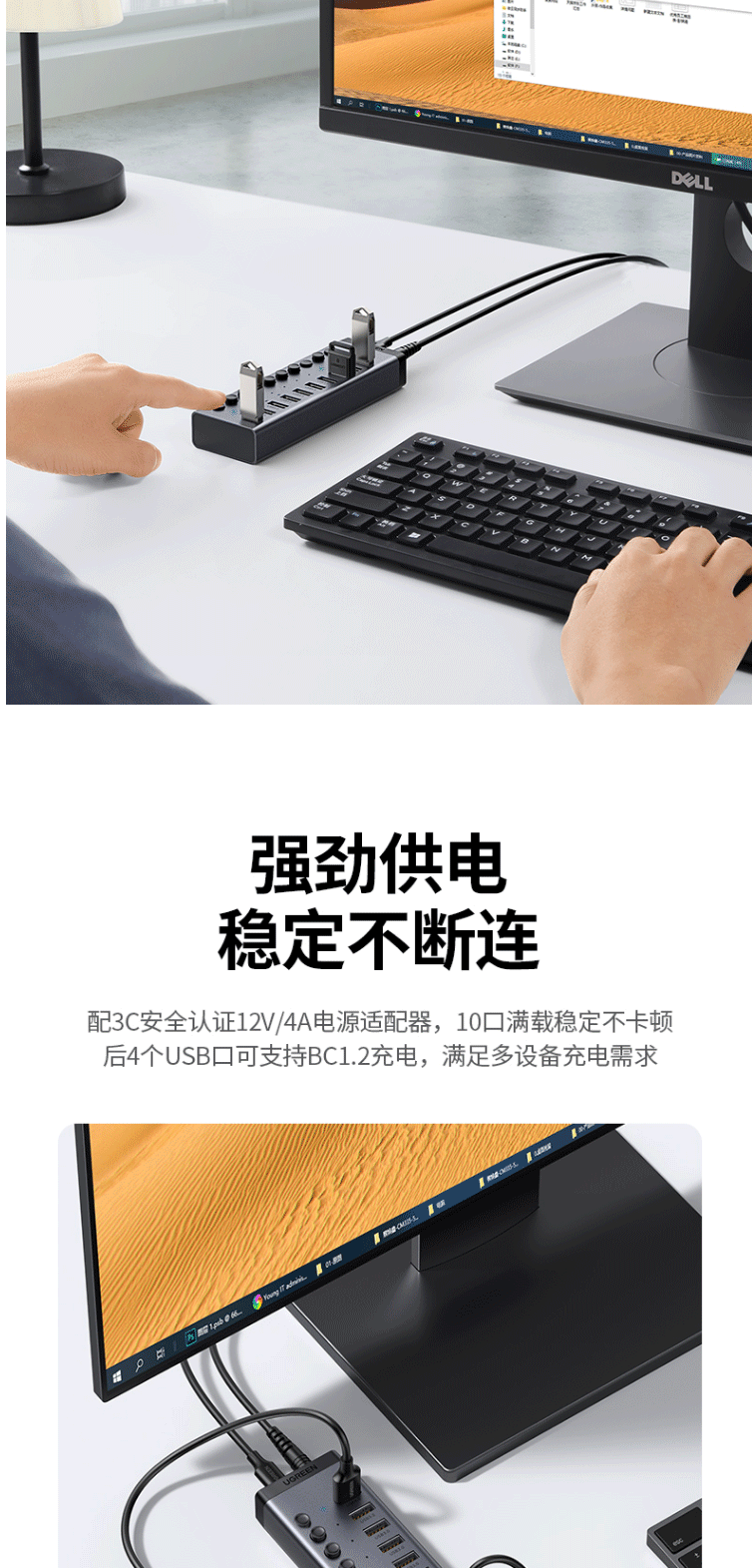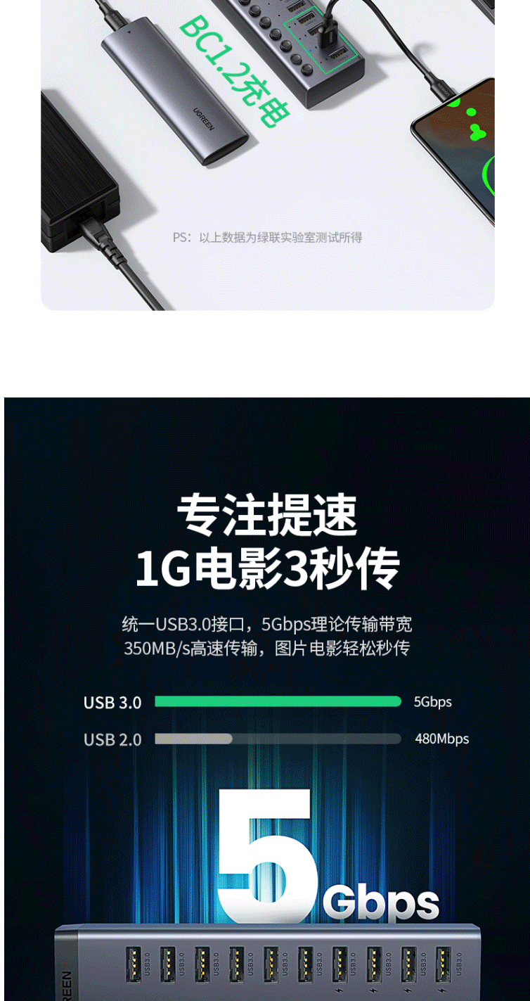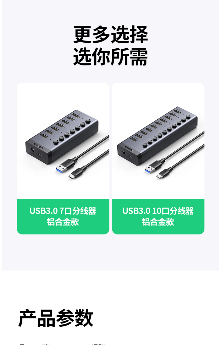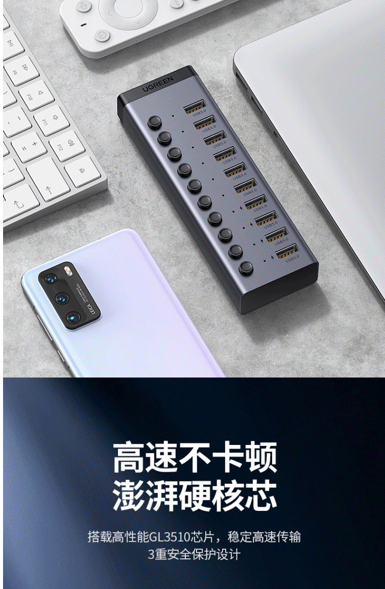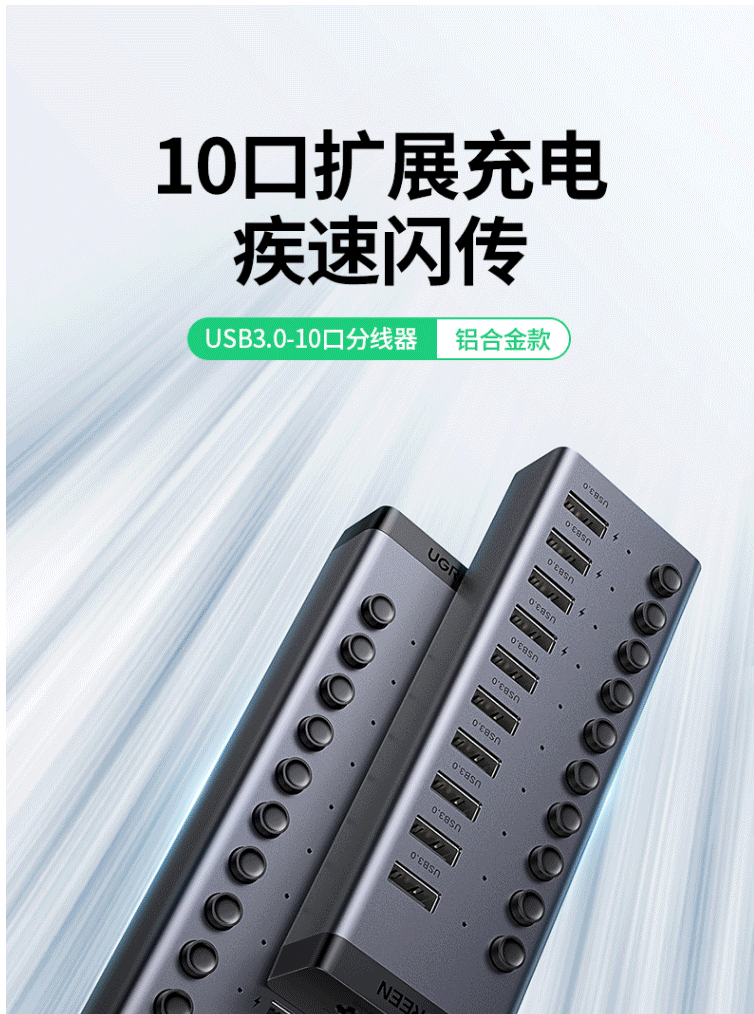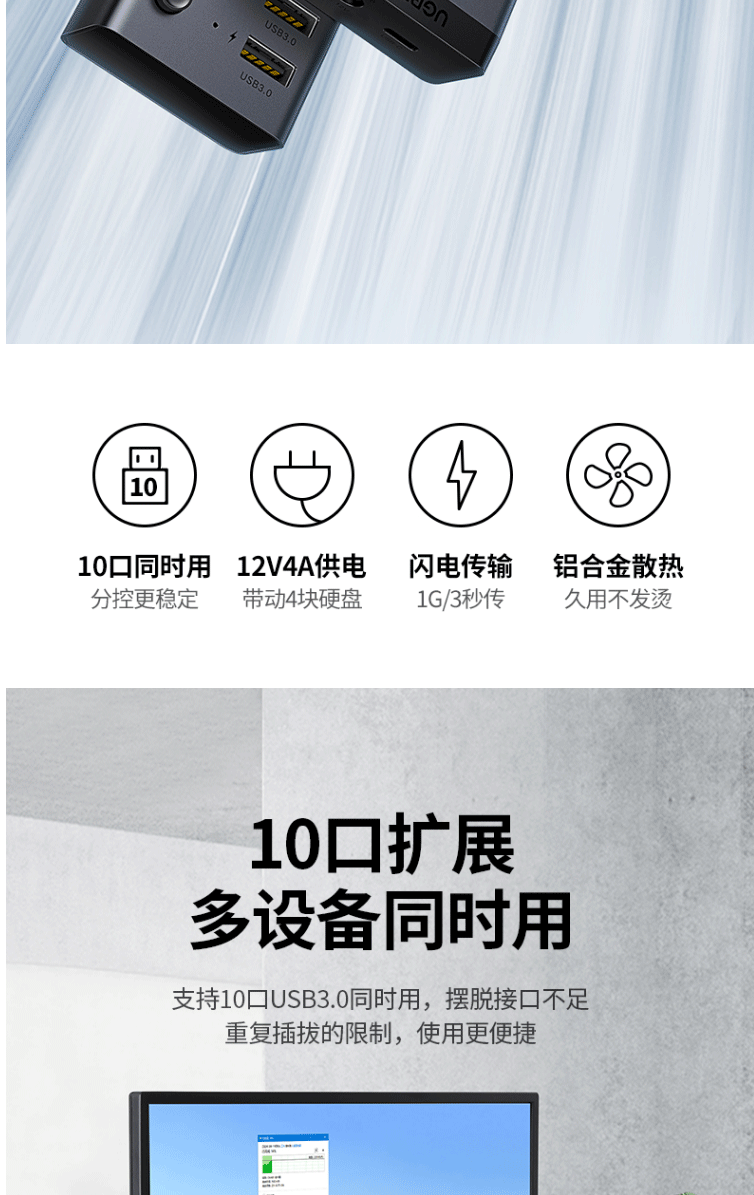 商品名称:绿联USB3.0分线器 高速10口拓展坞HUB集线器 12V4A供电 带电源适配器1米 30779