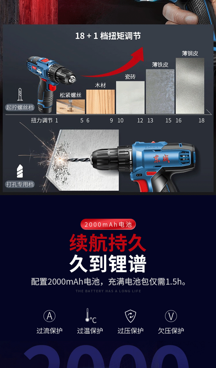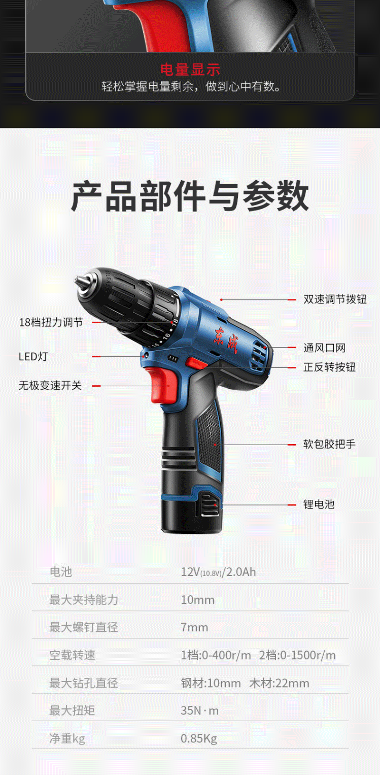 商品名称:东成锂电钻WJZ1201TS充电式手电钻电动螺丝刀多功能电钻套装