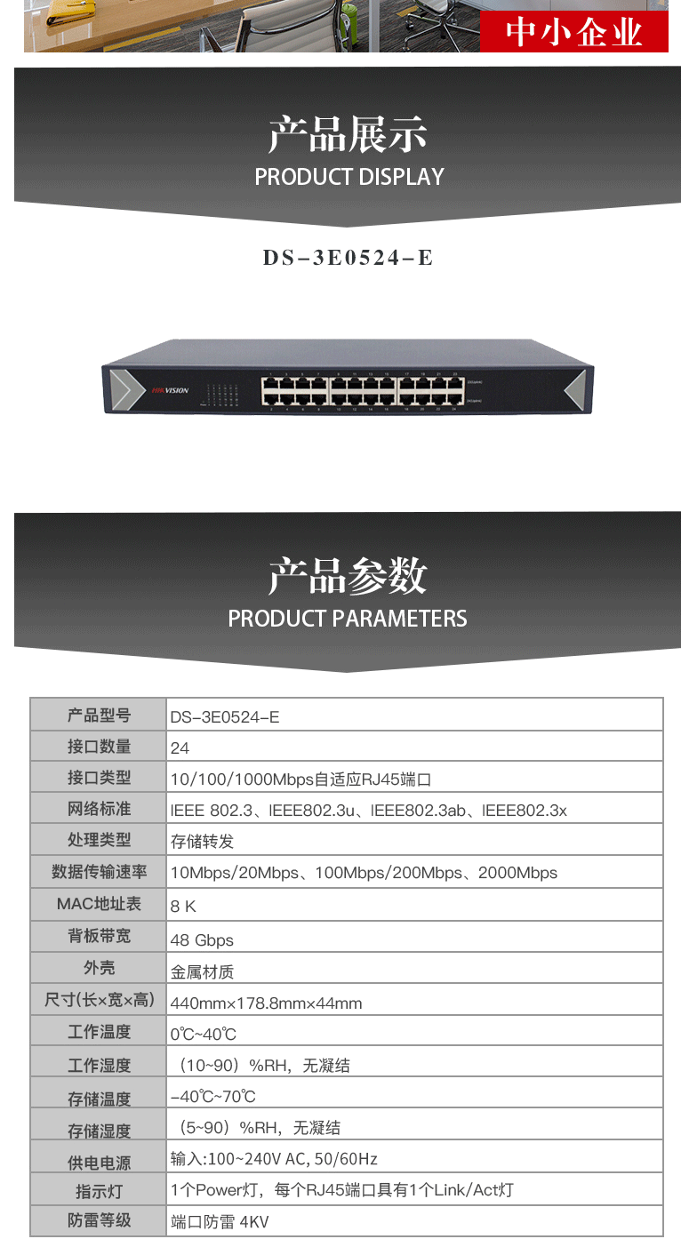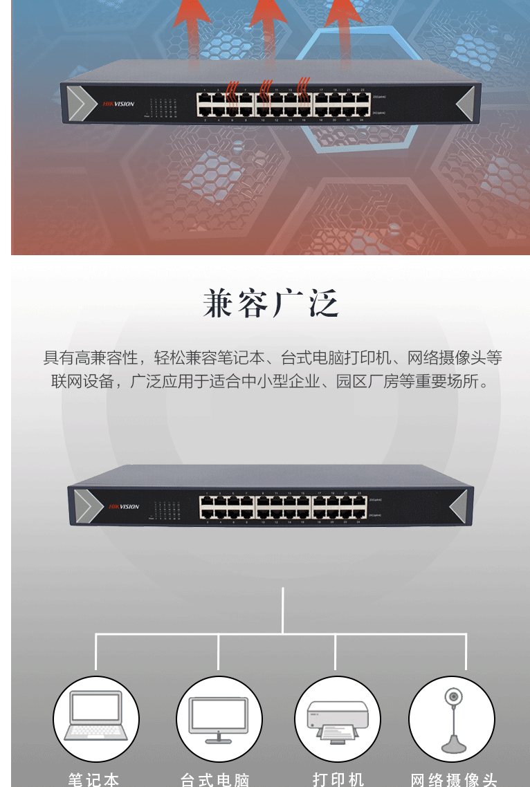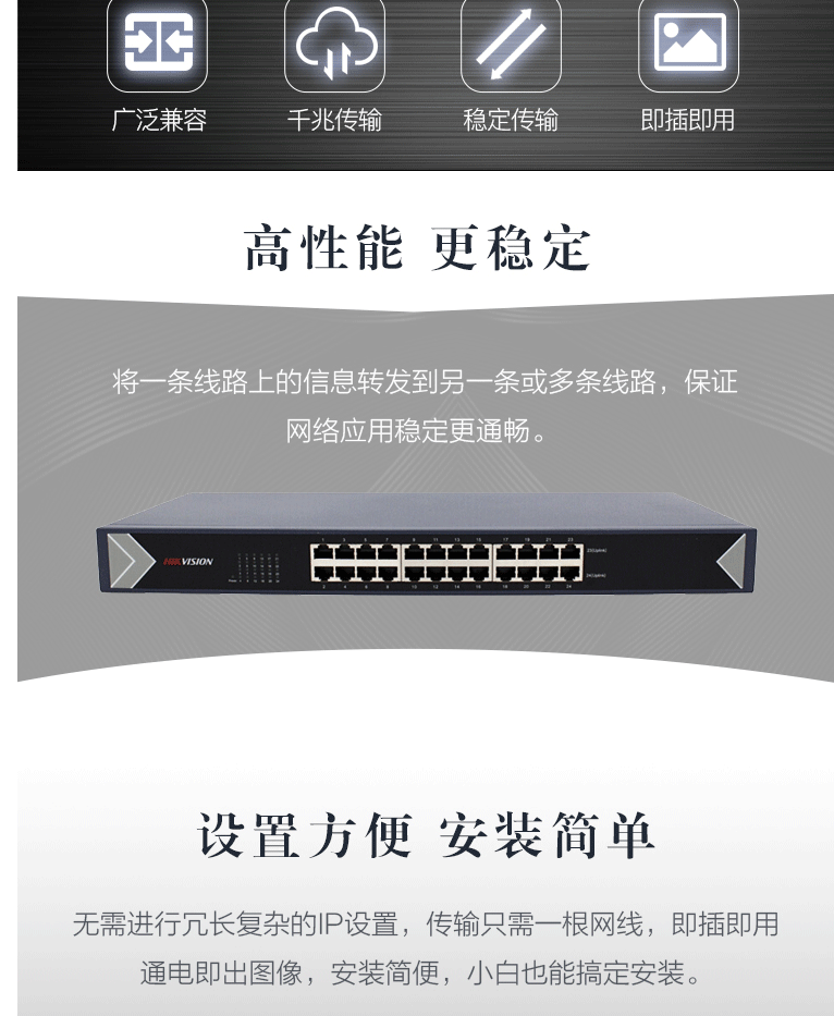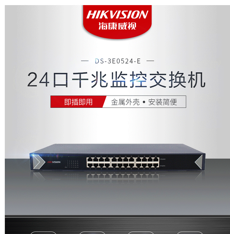 商品名称:海康威视HIKVISION交换机24网口千兆自适应非网管非POE供电交换器网线分流分线器 3E0524-E