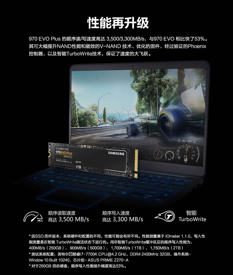 商品名称:三星(SAMSUNG)500G固态硬盘 SSD固态硬盘 M.2接口(NVMe协议) 【970 EVO Plus】