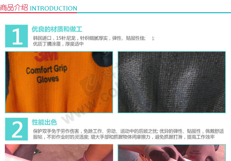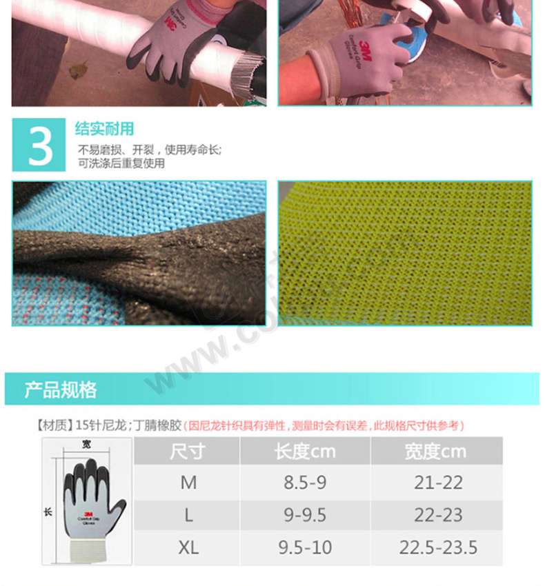 商品名称:3M 手套 舒适型防滑耐磨手套 L码