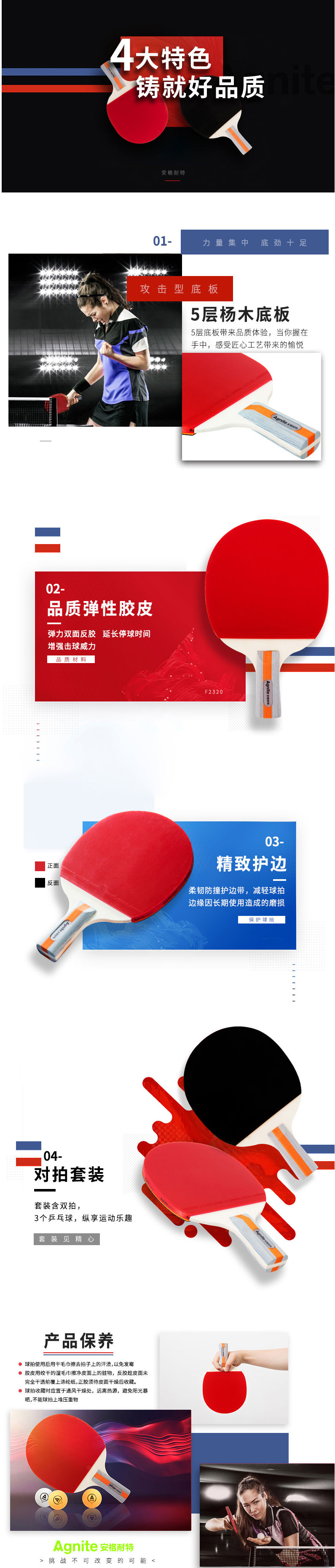 商品名称:安格耐特 直拍2拍3球乒乓球拍 F2320套装