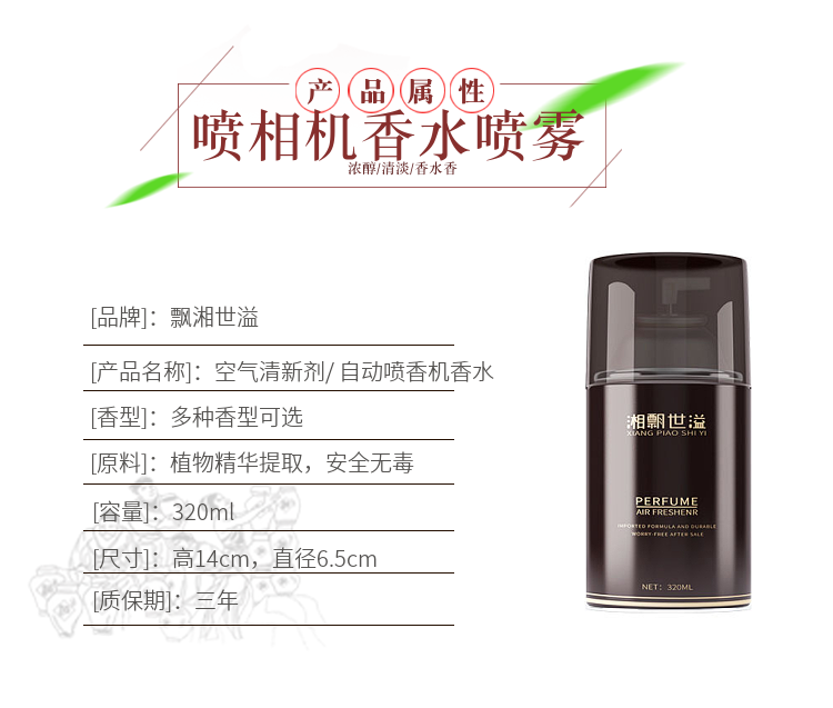 商品名称:空气清新剂 喷雾香氛 自动喷香机香水 12瓶/箱 香味随机
