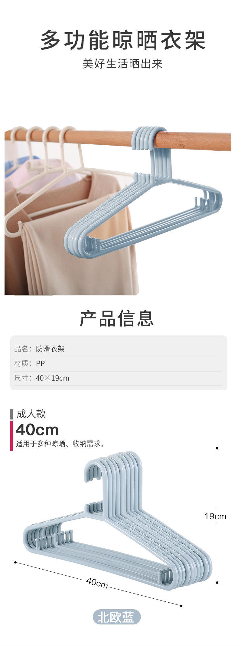 商品名称:塑料衣架 加粗晾衣架 衣服撑子 蓝色10只装