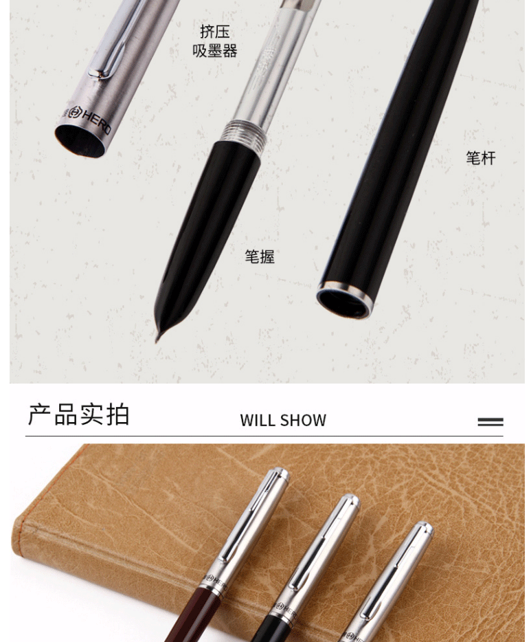 商品名称:英雄(HERO)钢笔经典007 黑色暗尖 钢笔 墨水笔