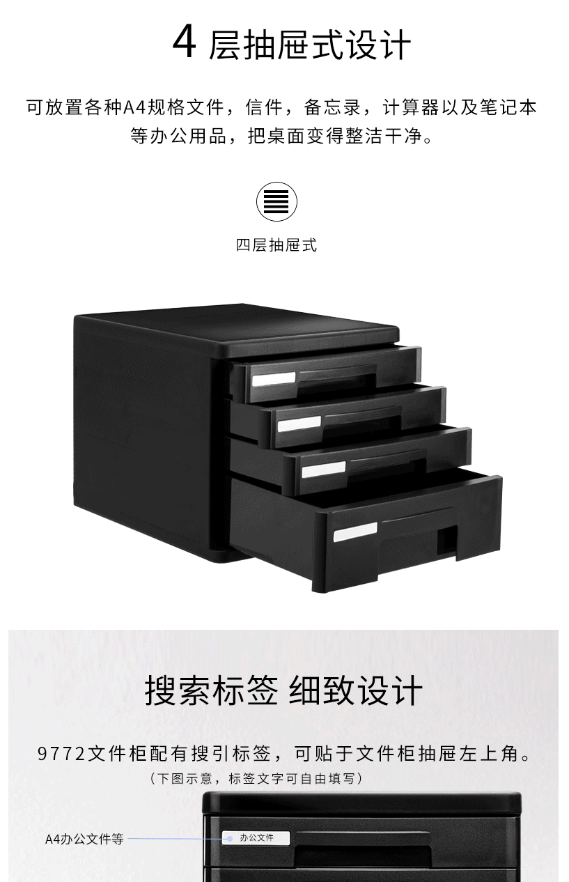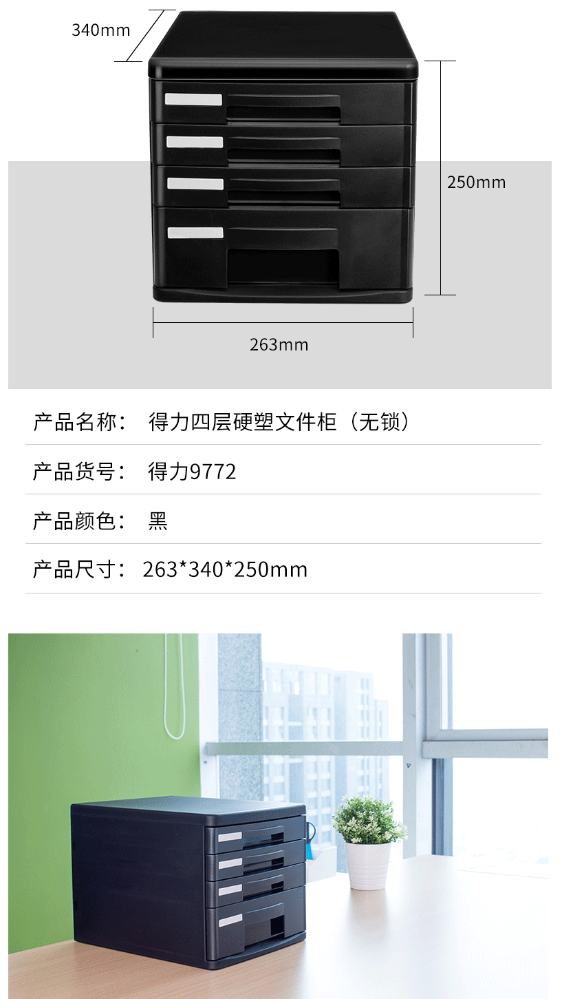 商品名称:得力(deli)4层桌面文件柜 黑色9772 (10只)