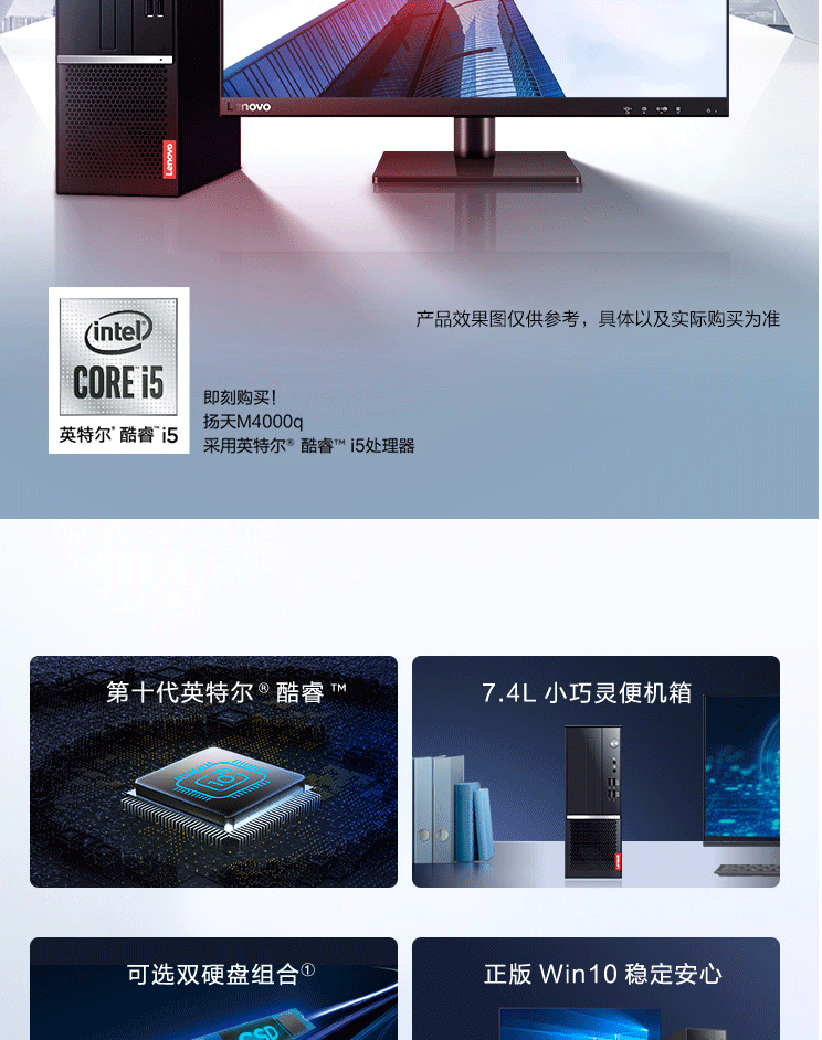 商品名称:联想(Lenovo)扬天M4000q 商用台式机电脑整机(i5-10400 16G 1T) 27英寸液晶显示器