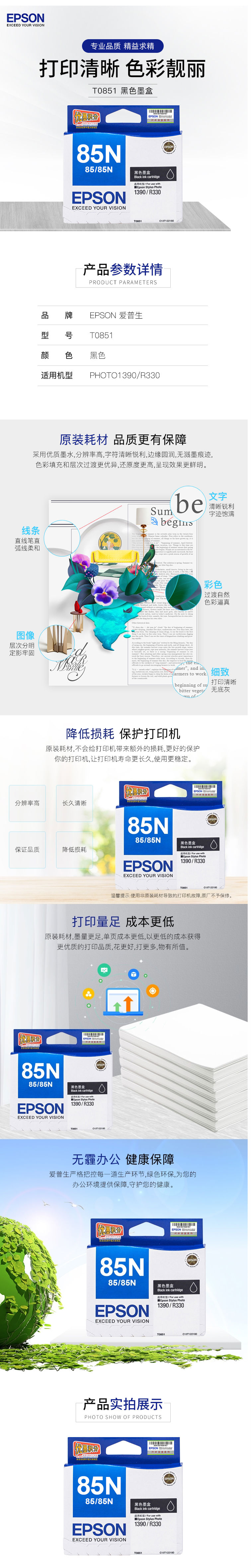 商品名称:爱普生T0851(T1221) 原装墨盒黑色单盒装(适用PHOTO 1390 R330)