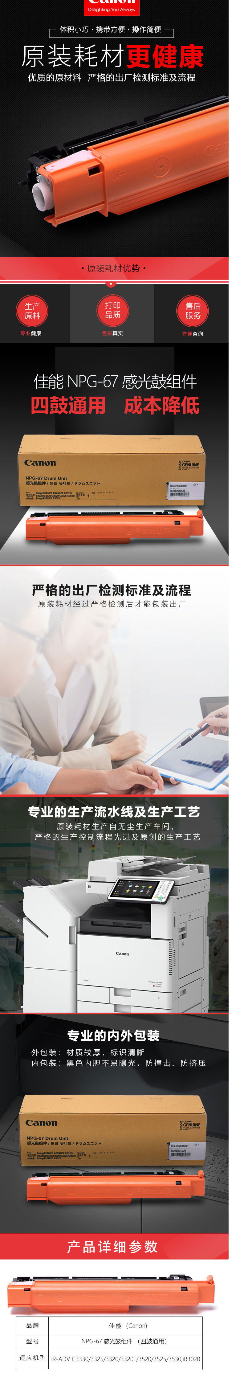 商品名称:佳能(Canon)NPG-67 原装感光鼓组件套鼓 感光鼓组件 硒鼓组件 四色通用(iR-ADV C3520/3525/3530/3320/3320L/3325/3330,C3020)一套四个