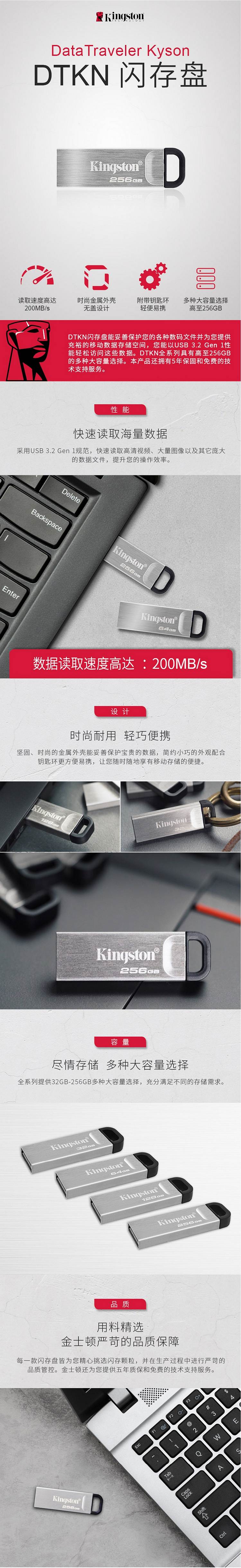 商品名称:金士顿(Kingston)128GB USB 3.2 Gen 1 U盘 DTKN 金属外壳 读速200MB/s