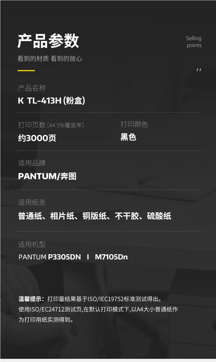 商品名称:科思特TL-413H 粉盒 大容量 适用 奔图 P3305DN/M7105Dn 专业版 黑色