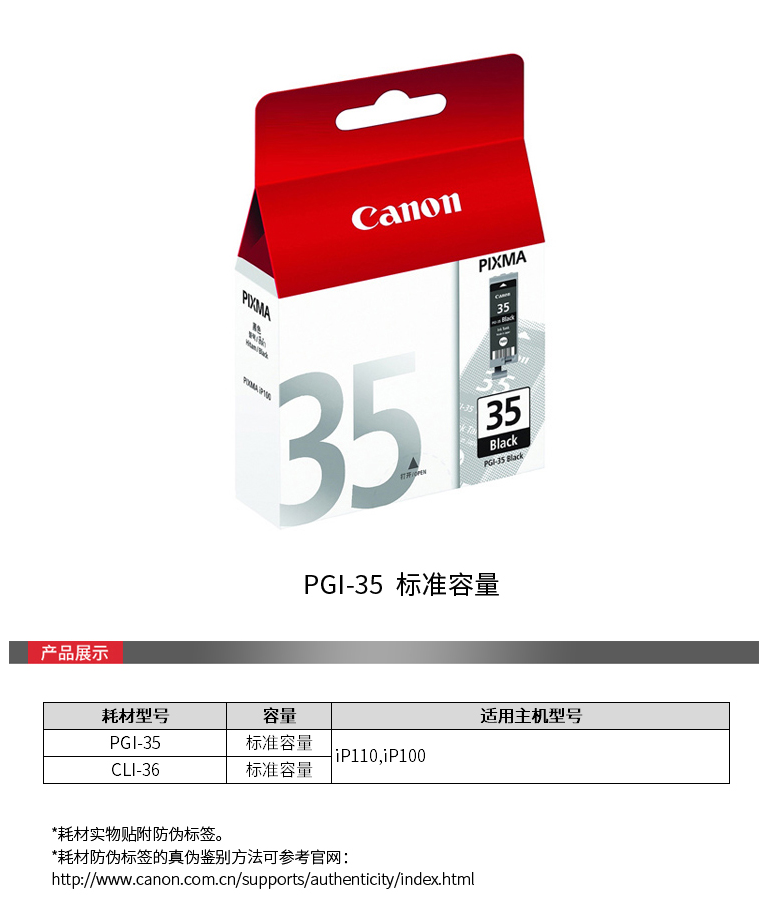 商品名称:佳能PGI-35原装墨盒黑色标准容量装(适用TR150)