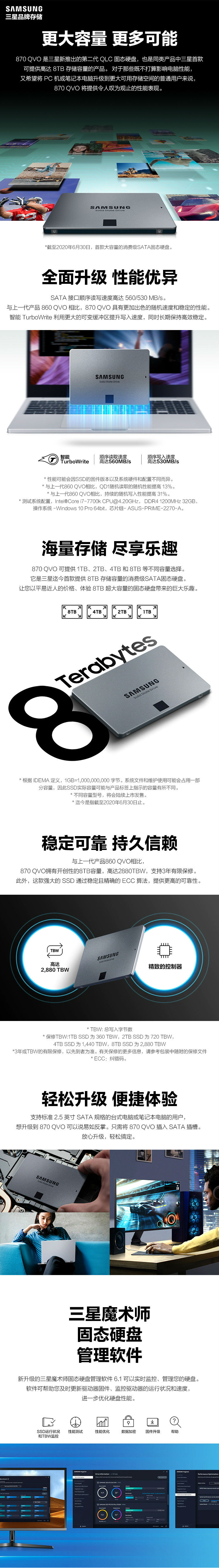 三星(SAMSUNG)1TB SSD固态硬盘 SATA3.0接口 870 QVO(MZ-77Q1T0B )