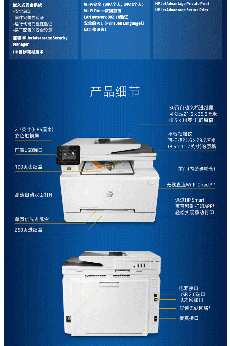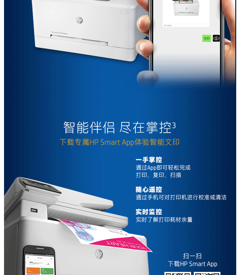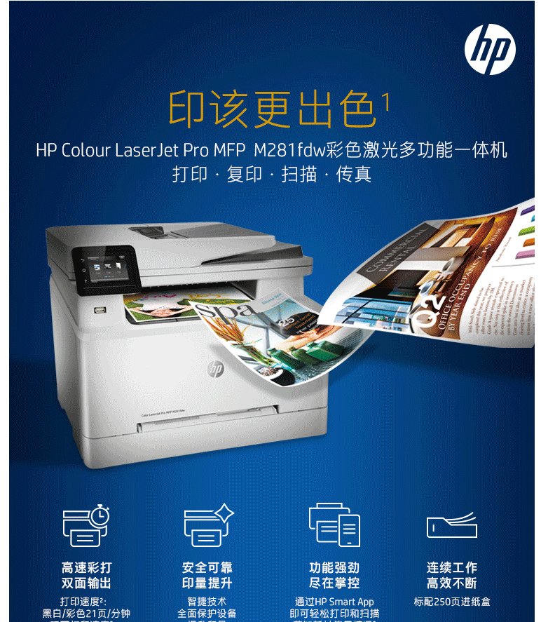 惠普(HP)Colour LaserJet Pro M281fdw彩色激光多功能一体机(打印 复印 扫描 传真)
