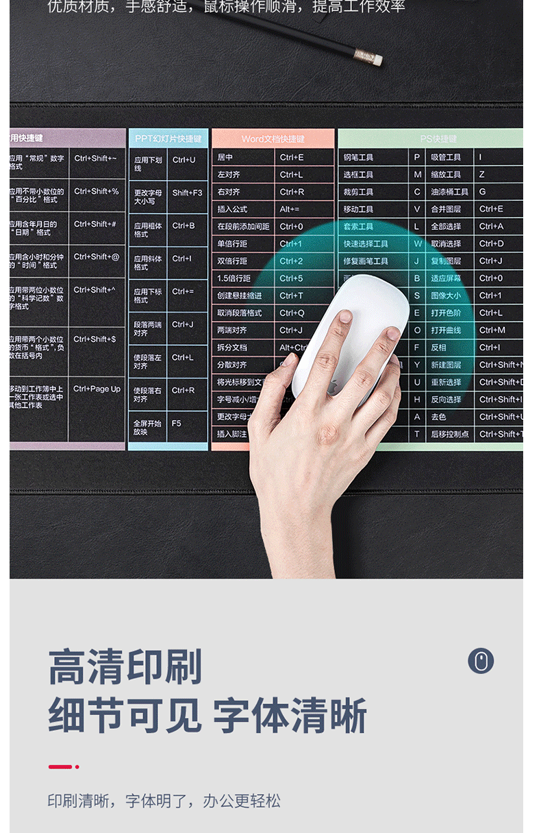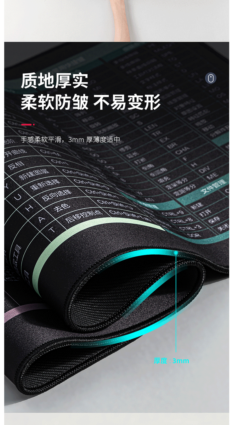 商品名称:得力(deli) 快捷键鼠标垫 800*300*3mm 快捷键大全大号鼠标垫 83004