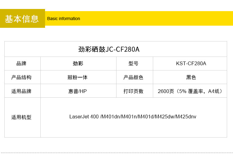 商品名称:劲彩CF280A/CE505A硒鼓 适用惠普M401dn/n/d M425dw/dn P2055