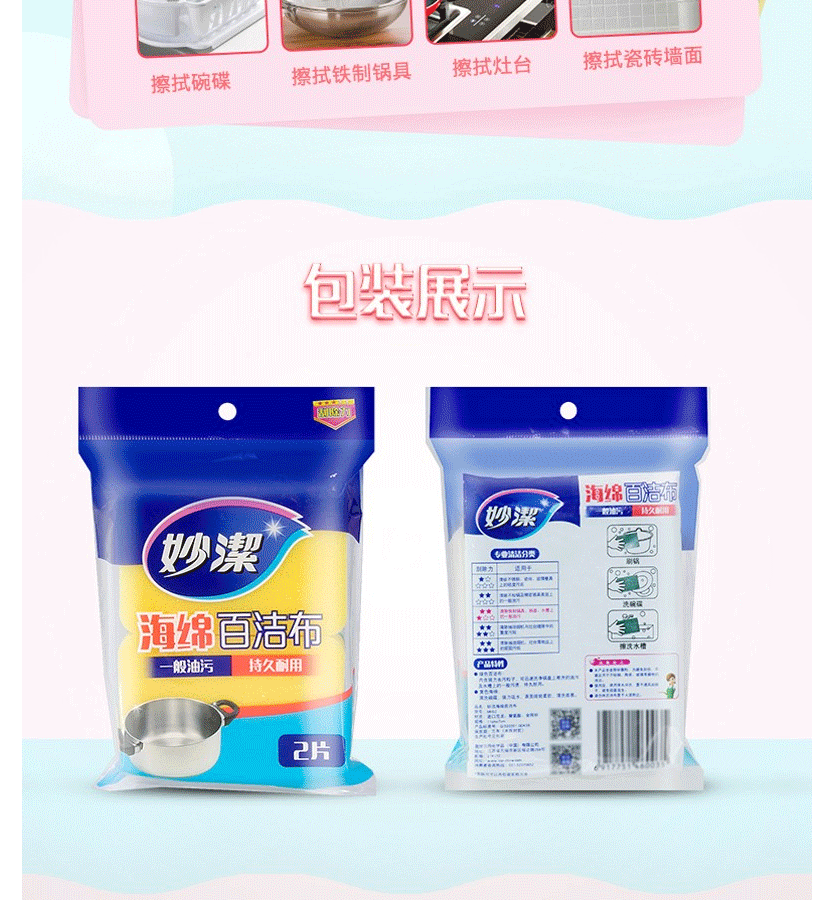 商品名称:妙洁 海绵百洁布 2块装
