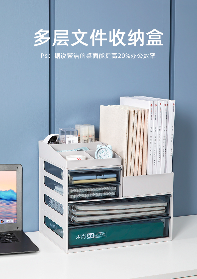 商品名称:公室置物架桌面多层文件夹a4桌上收纳盒抽屉式书桌文具整理神器yn60190(灰色)