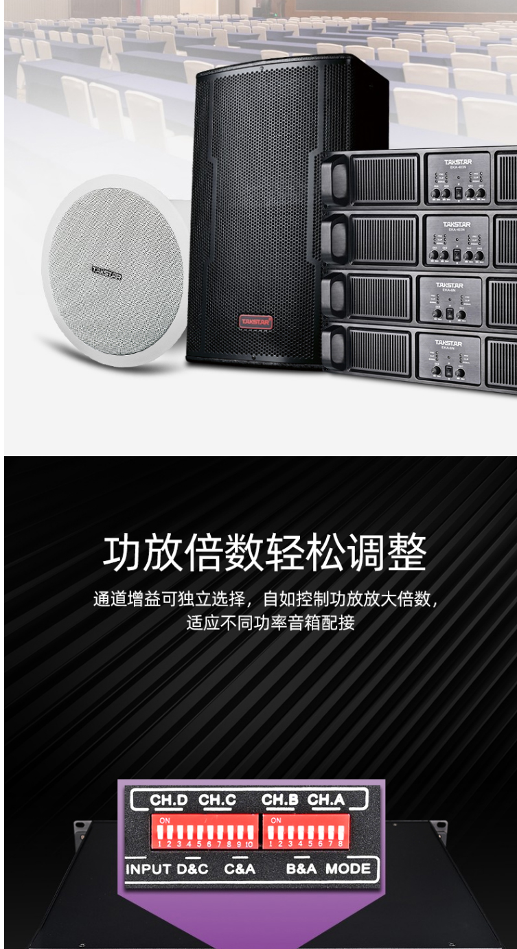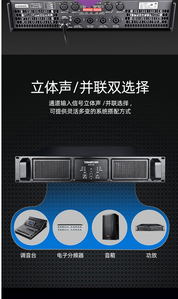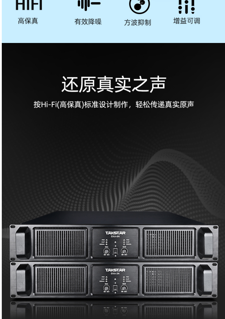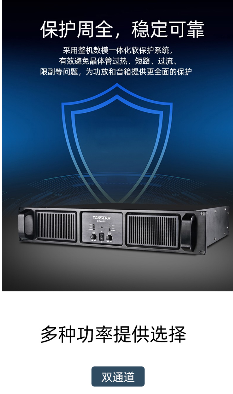 商品名称:得胜(TAKSTAR)EKA-6N 定压定阻功放机 双通道专业功率放大器 高保真HIFI立体声纯后级功放