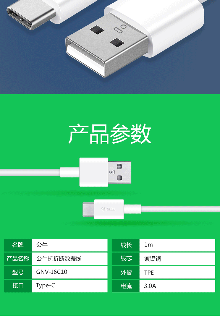商品名称:公牛(BULL) GNV-J6C10 数据线/1米/USB转接头充电线