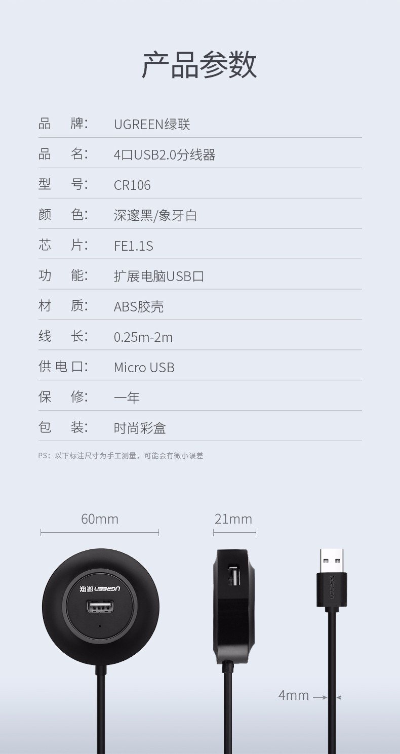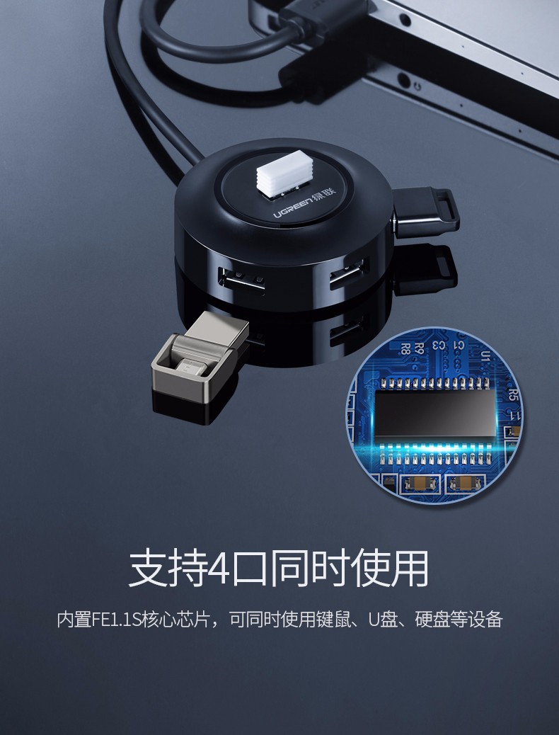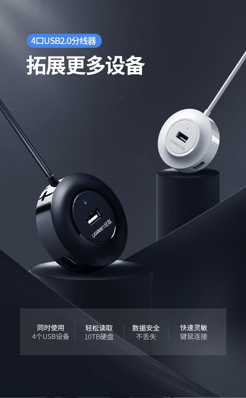 商品名称:绿联 USB2.0 4口分线器 黑2米30367