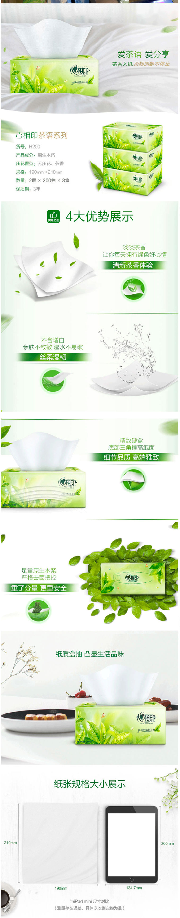 商品名称:心相印盒抽纸面巾 2层200抽*3盒面巾纸(3盒/提)