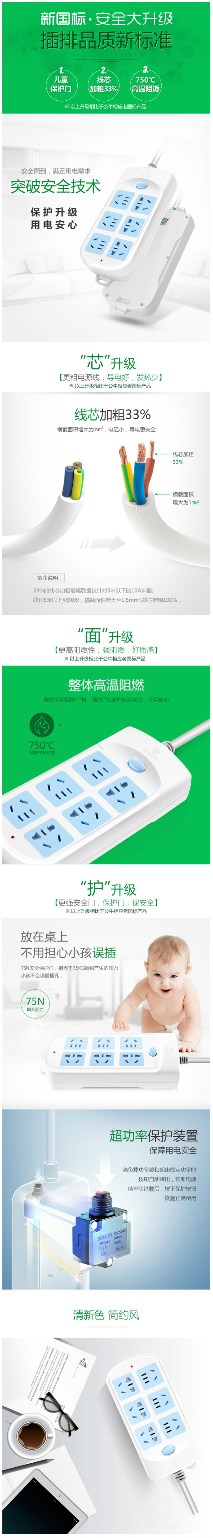 商品名称:公牛新国标 GN-603 3米-6位 插排 3米 电源插座