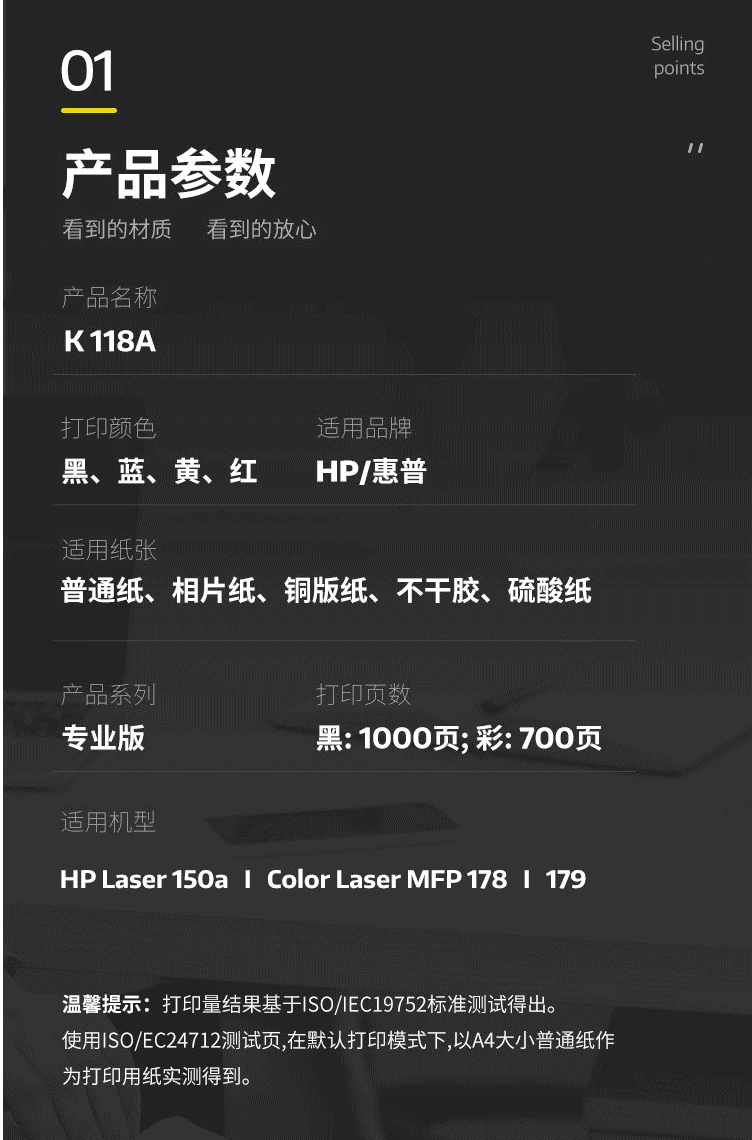 商品名称:科思特 118A(W2082A) 粉盒(带芯片)黄色 Y 适用HP 150a MFP 178/179 专业版