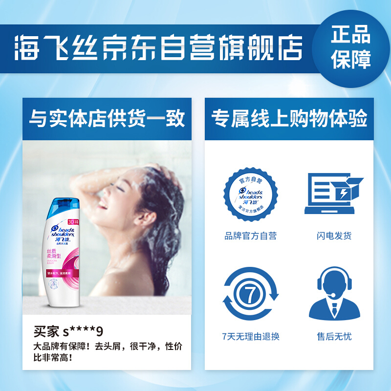 商品名称:海飞丝洗发水丝质柔滑400ml 持久去屑清爽控油柔顺 清香型 男士女士通用