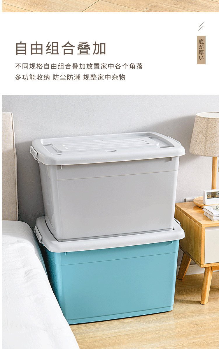 商品名称:120L蓝色单只装特大号 塑料收纳箱整理箱加厚储物箱