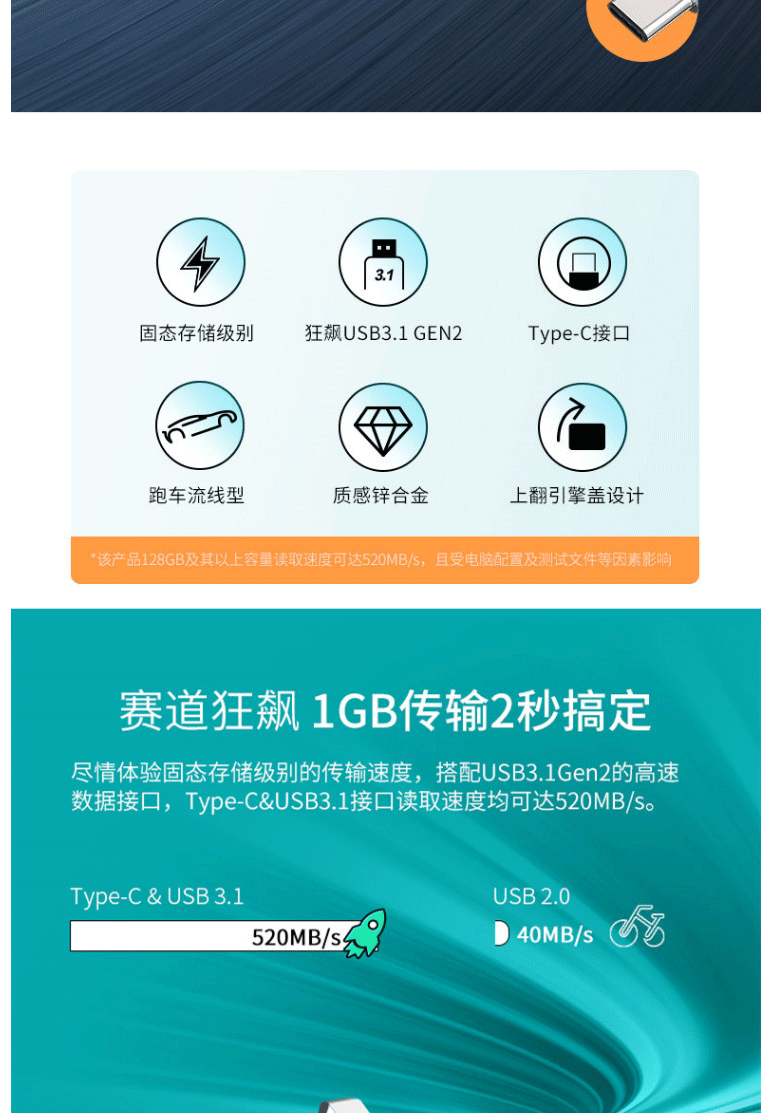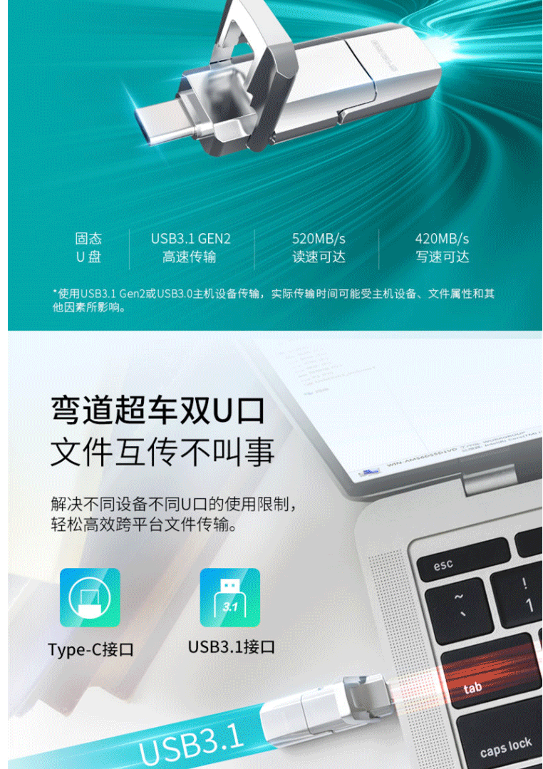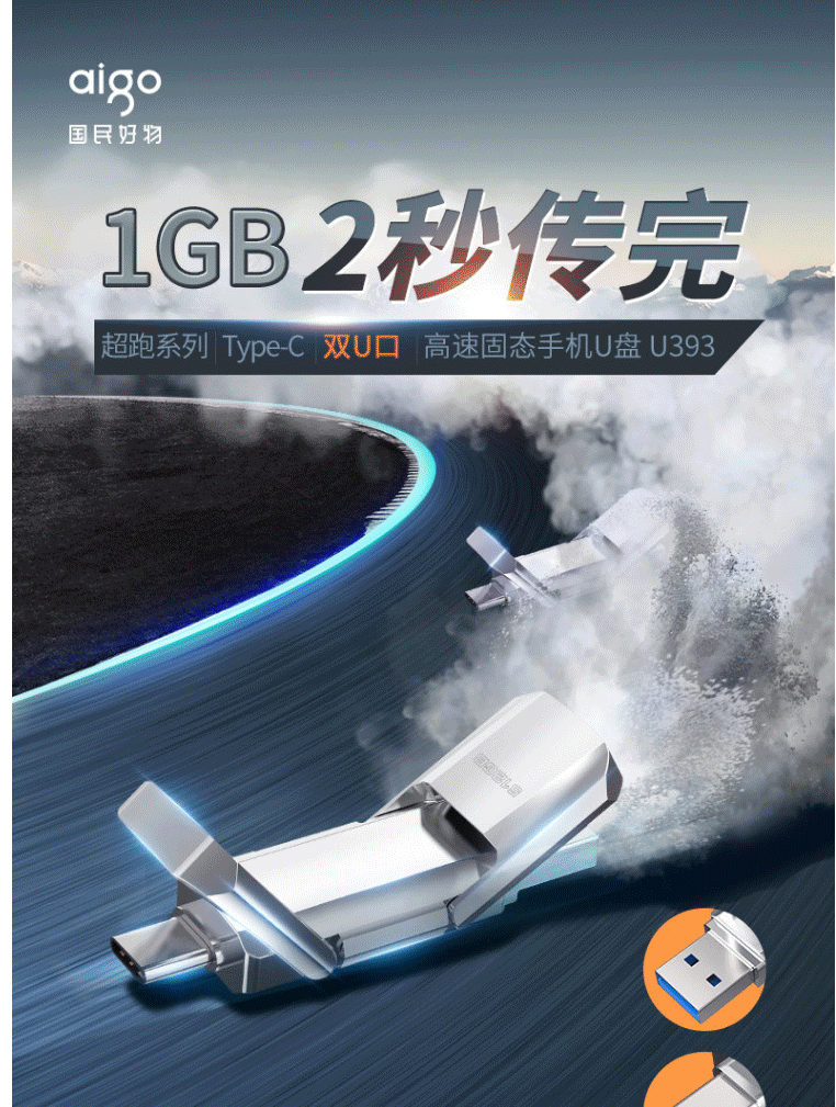 商品名称:爱国者(aigo)256GB USB3.1 Type-C双U口 高速固态U盘 U393