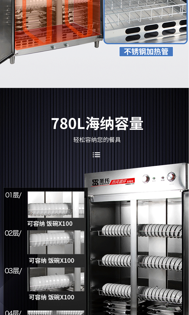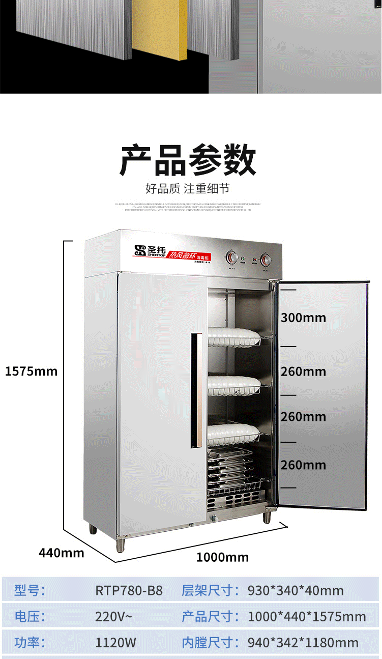 圣托(Shentop)热风循环高温消毒柜 立式商用双开门不锈钢消毒碗柜 RTP780-B8