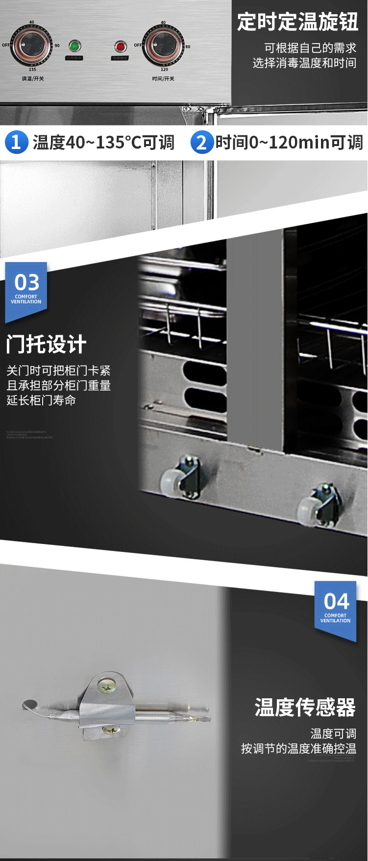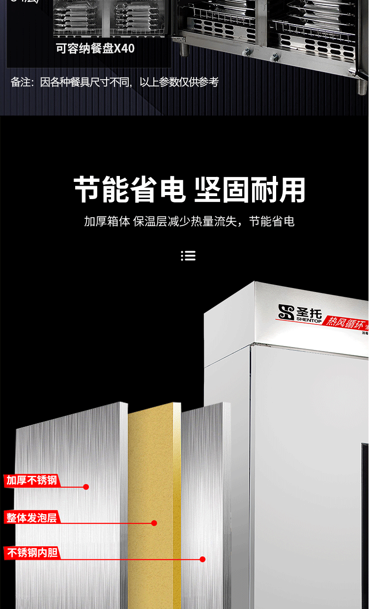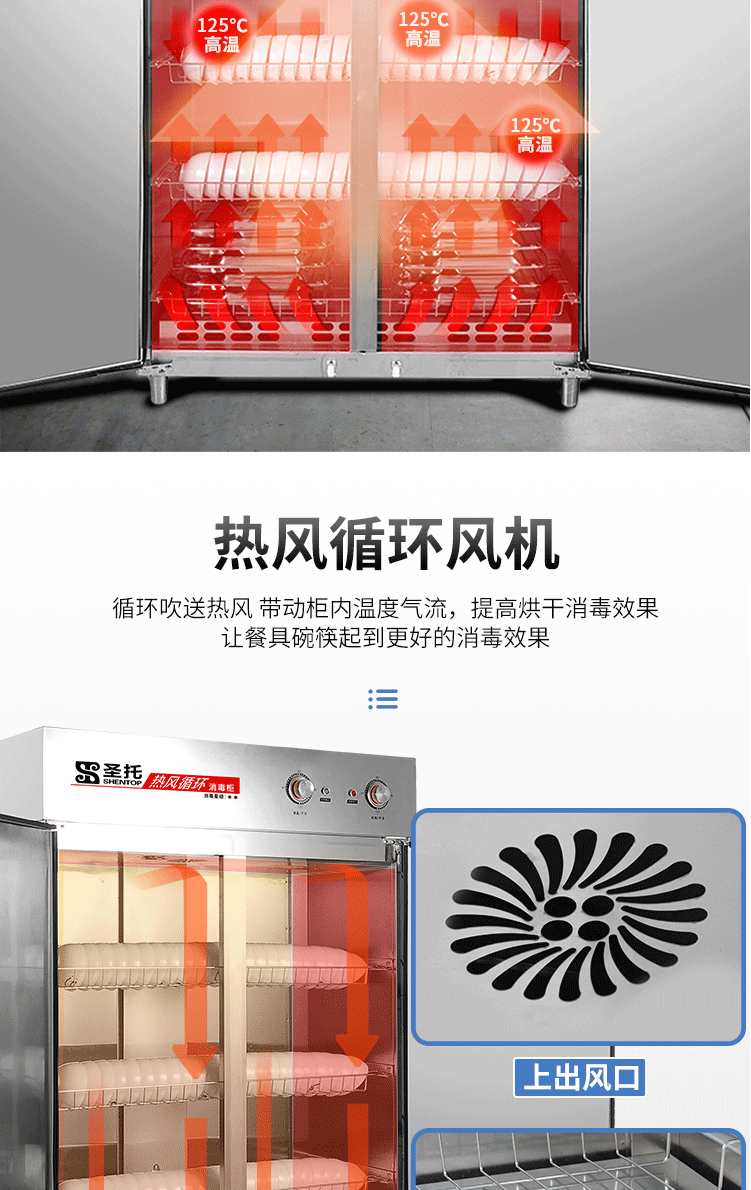 商品名称:圣托(Shentop)热风循环高温消毒柜 立式商用双开门不锈钢消毒碗柜 RTP780-B8