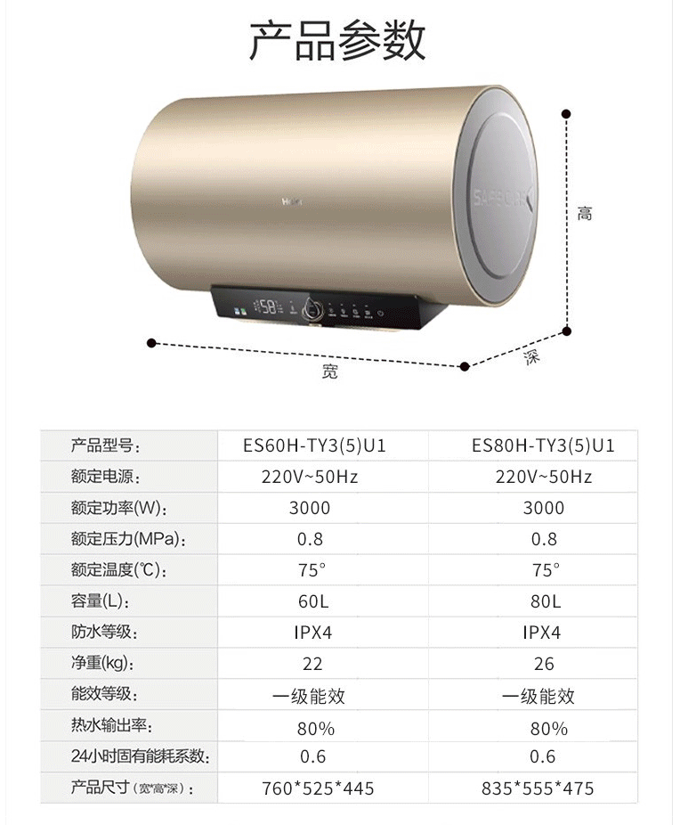商品名称:海尔(Haier)热水器60升大水量WIFI智控家用电热水器 ES60H-TY3(5)U1